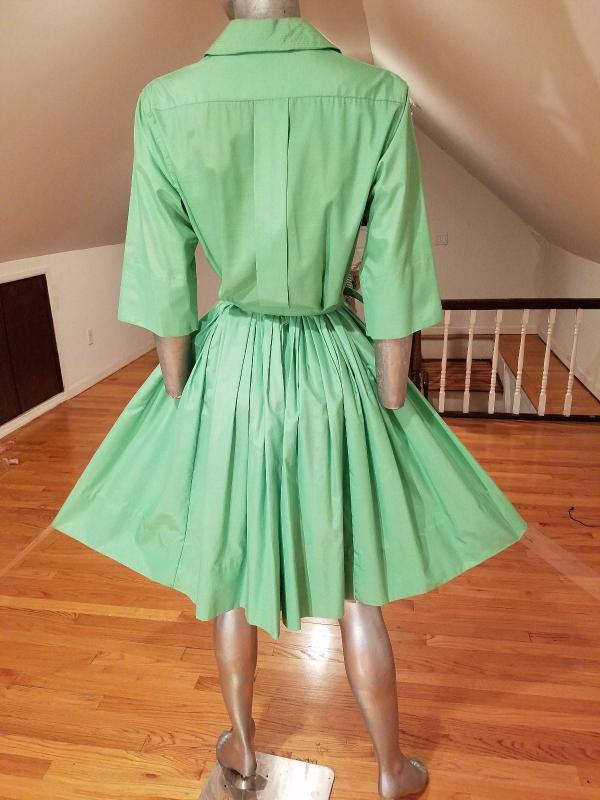 Beautiful full sweep dress brushed cotton with its own belt from MGM Star Elaine ravell Estate part of her collection was used as understudy for Dorothy Lamour This one was made for her by famous Best & Co 5th Avenue. A vintage size -16