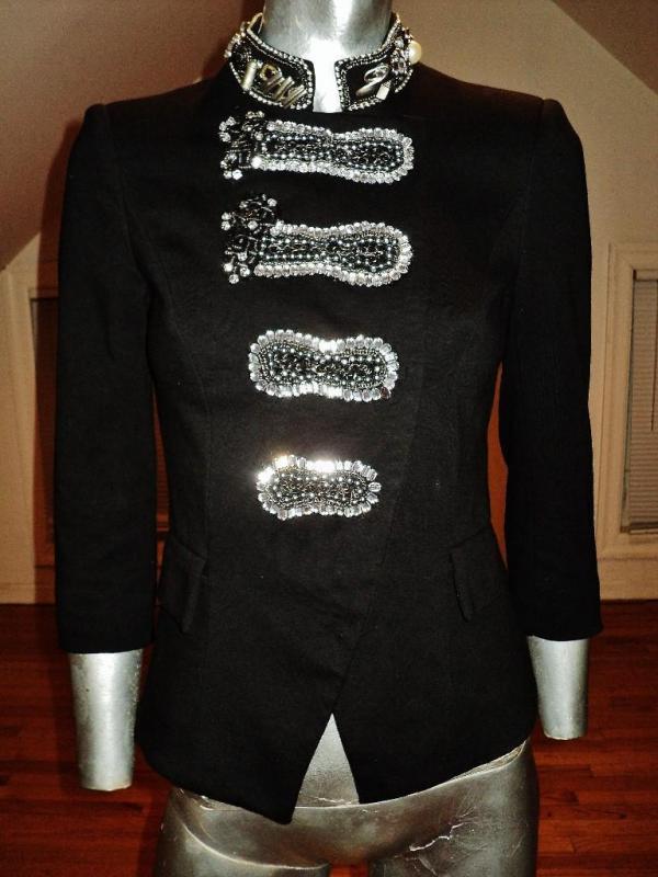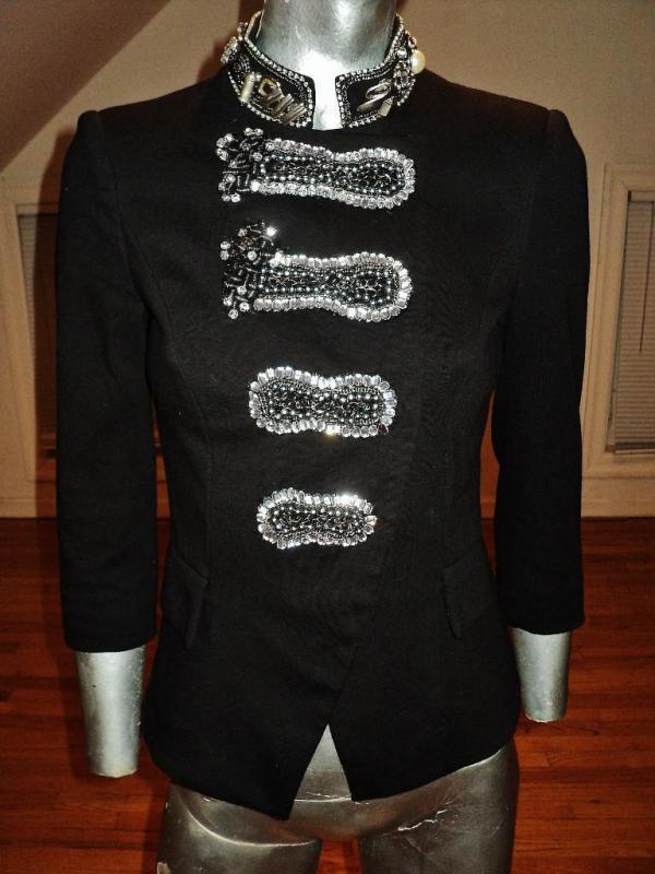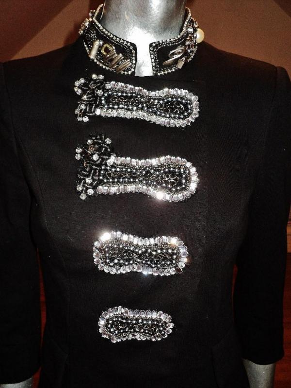 A stunning beauty in a military style look fitted with heavy embellishment of all kind.
