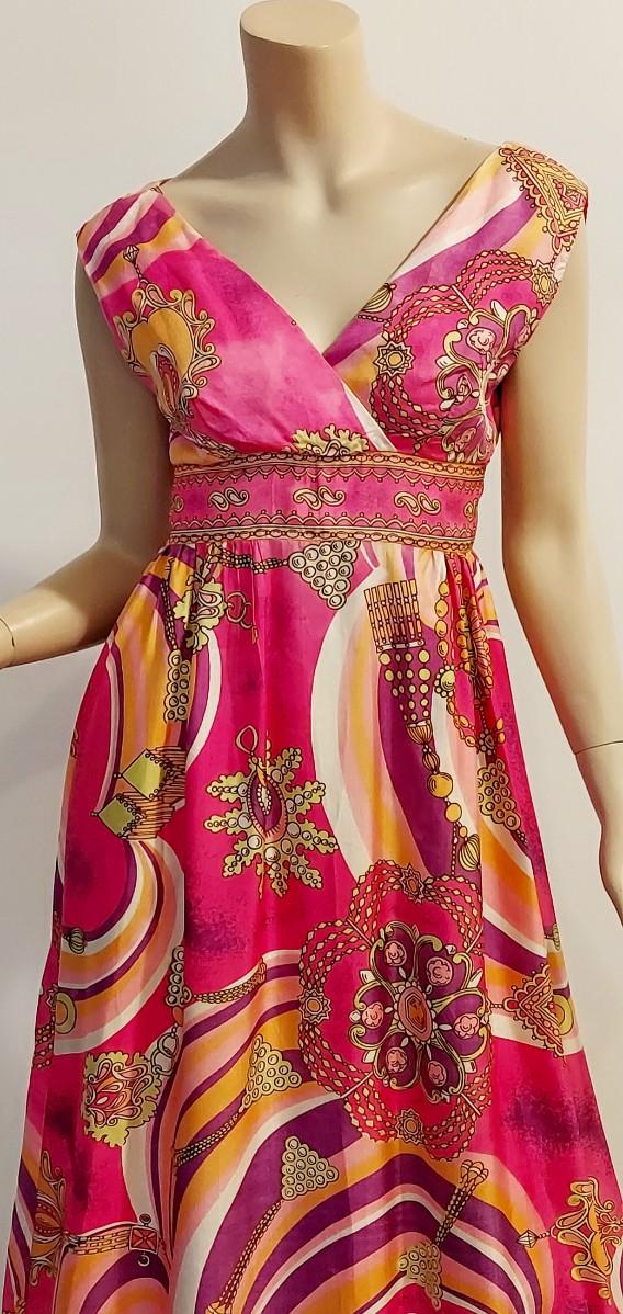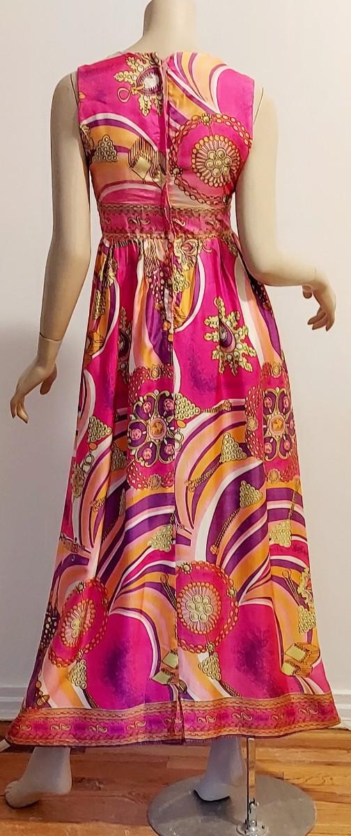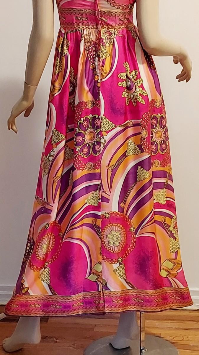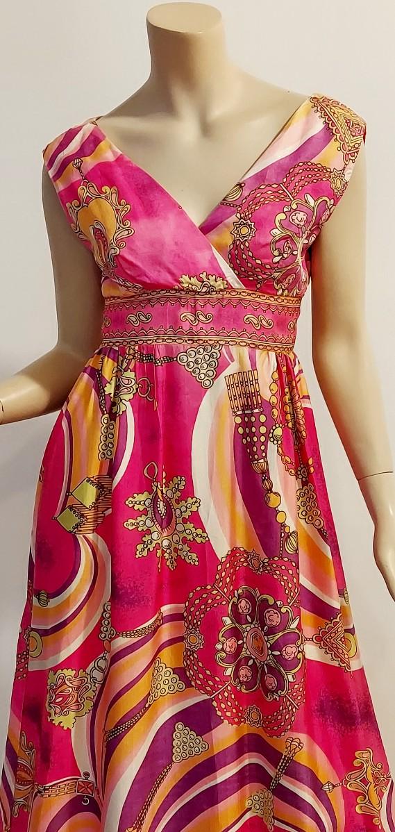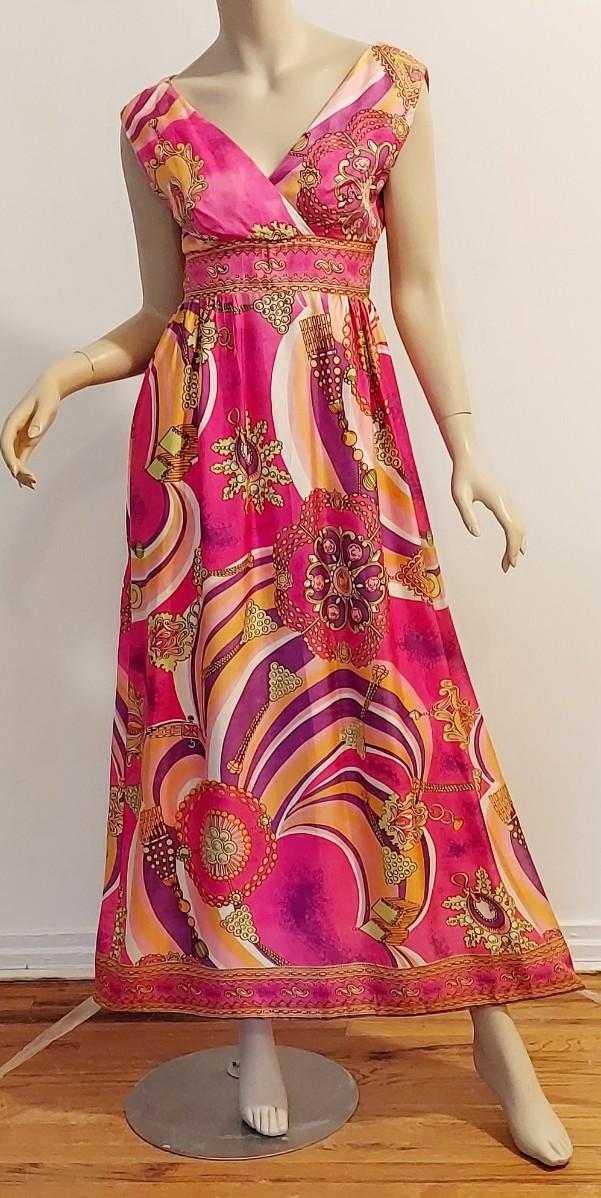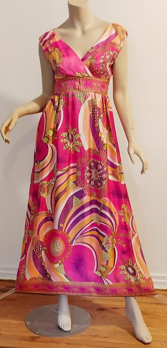 Plunge V front ,back Zipper Empire Waist Hostess dreamy Swirl Design.