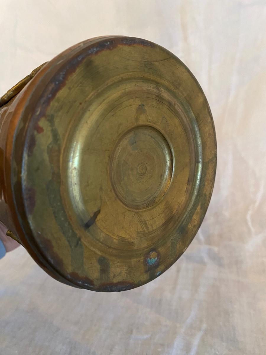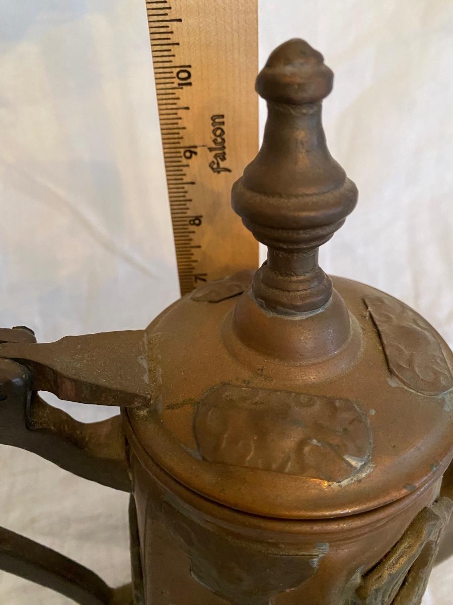 Vtg Moroccan copper and brass ornate teapot. 11 inches tall and 9.5 inches wide. Crafted from high-quality copper and brass, this ornate teapot showcases the exquisite workmanship of the Moroccan artisans.
