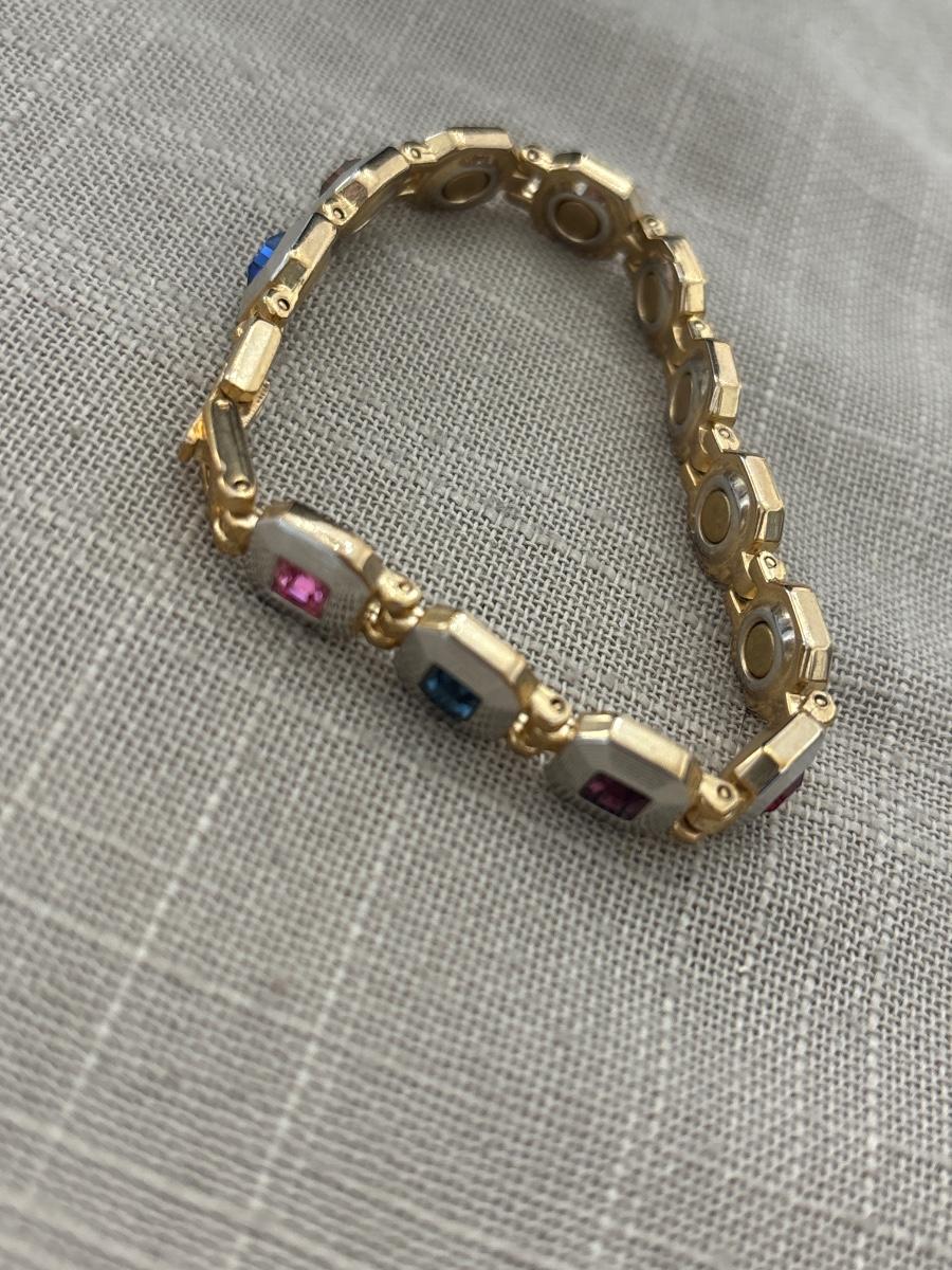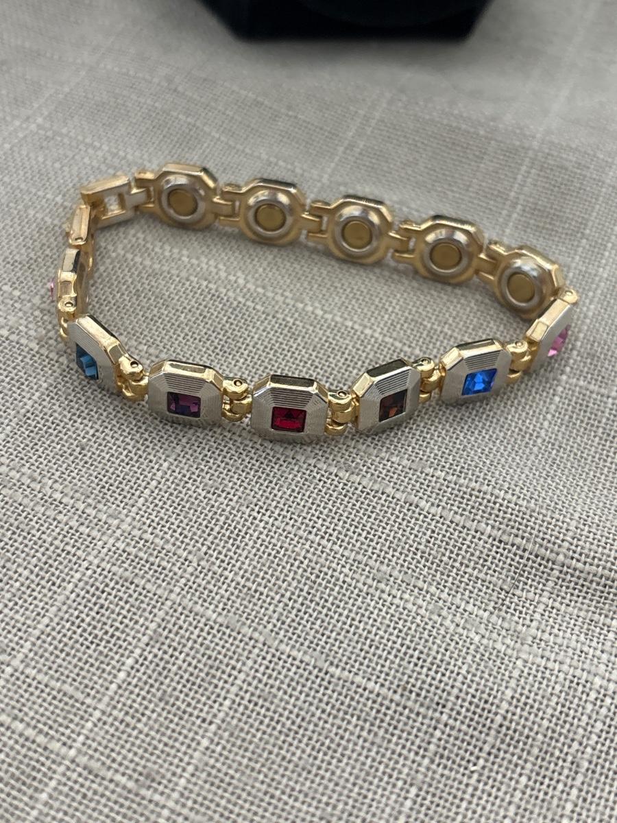 Vtg Multi Gem Amethyst Gold tone bracelet