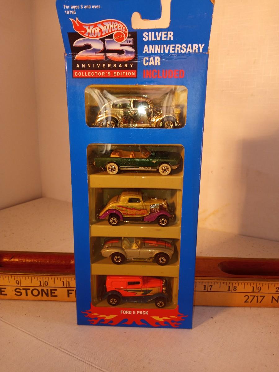 VTG NIP Hot Wheels Mattel 25th Anniversary Ford 5 Pack Silver Anniversary Cobra