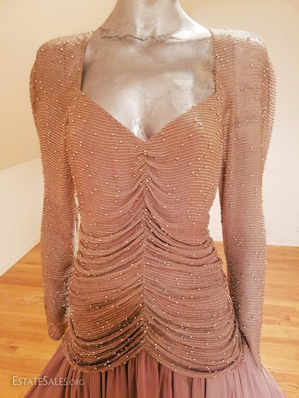 No pictures can do this one justice it is to die for. Layer of fluid chiffon skirt.just like a dream
