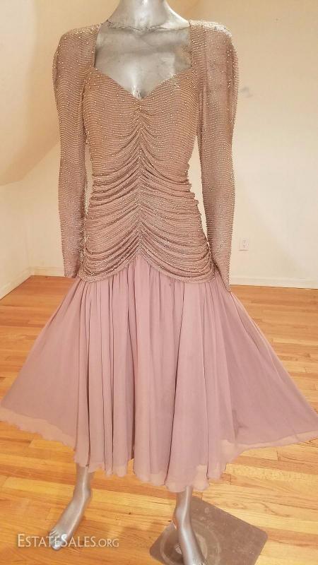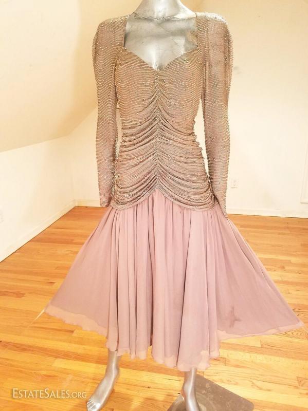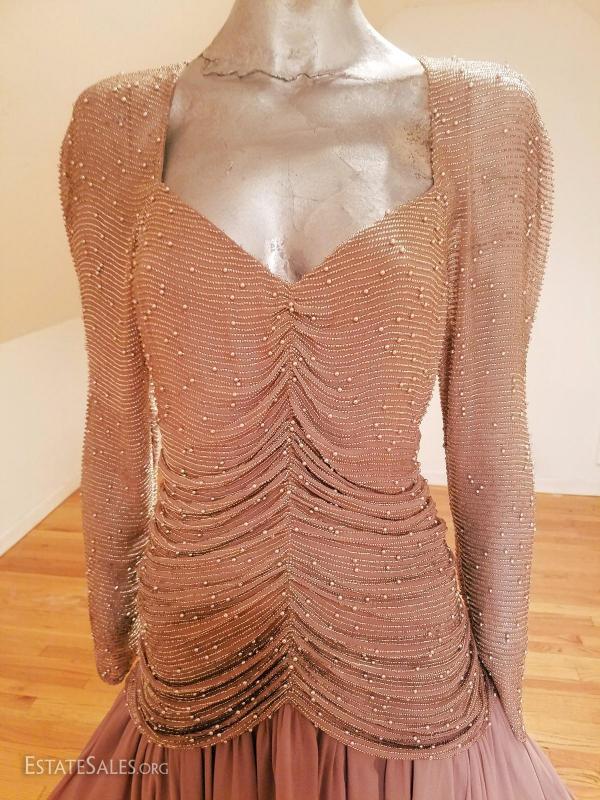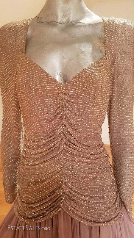 Couture oleg Cassini silk Ballerina fluid hand beaded draped dress in lavender .