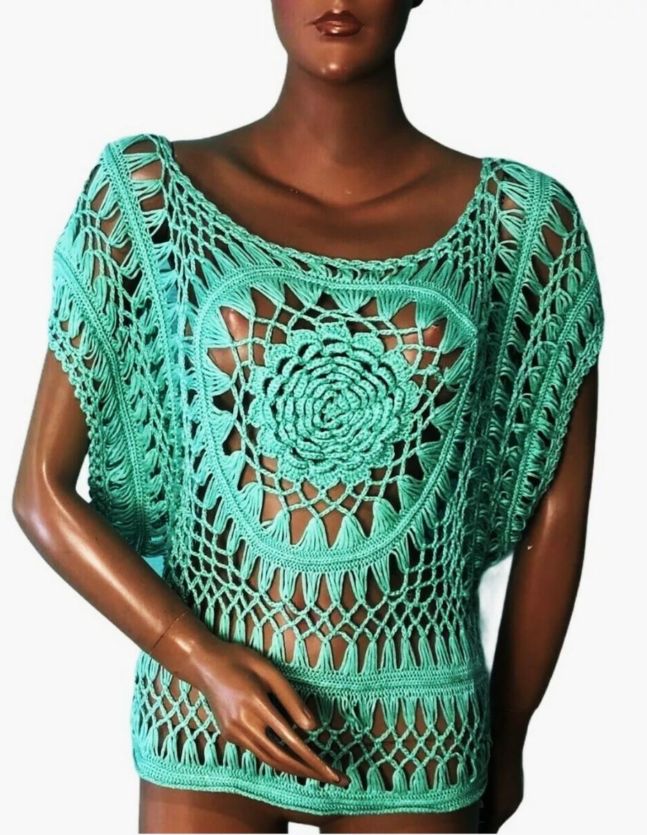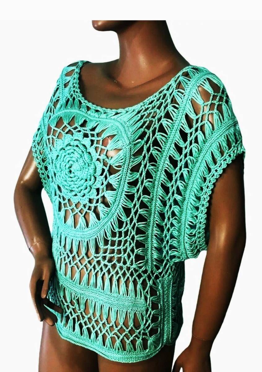Amazing Crochet green Top. Gorgeous coloration easy to wear. and a Beauty