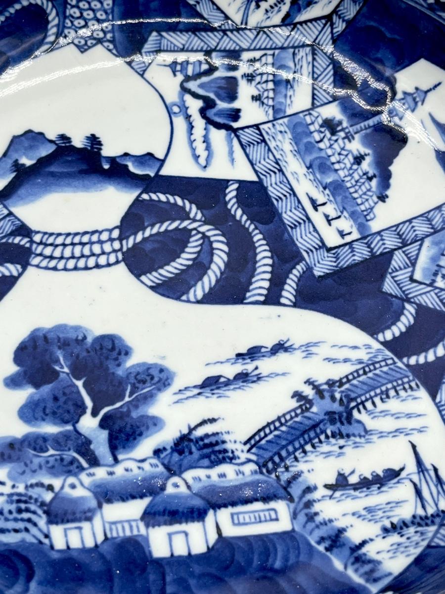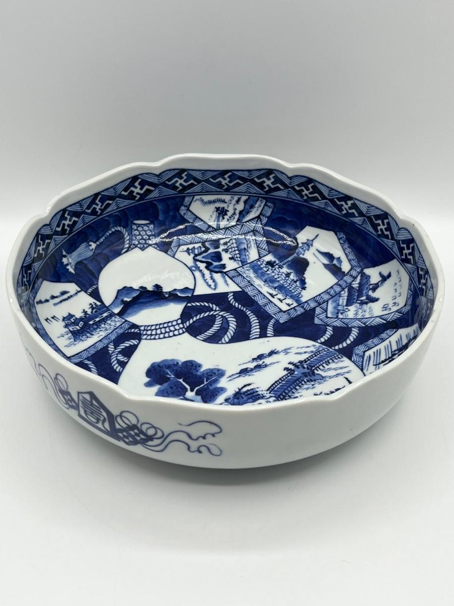 Vtg. Oriental 10” Porcelain Bowl ~ Blue & White Landscape scene