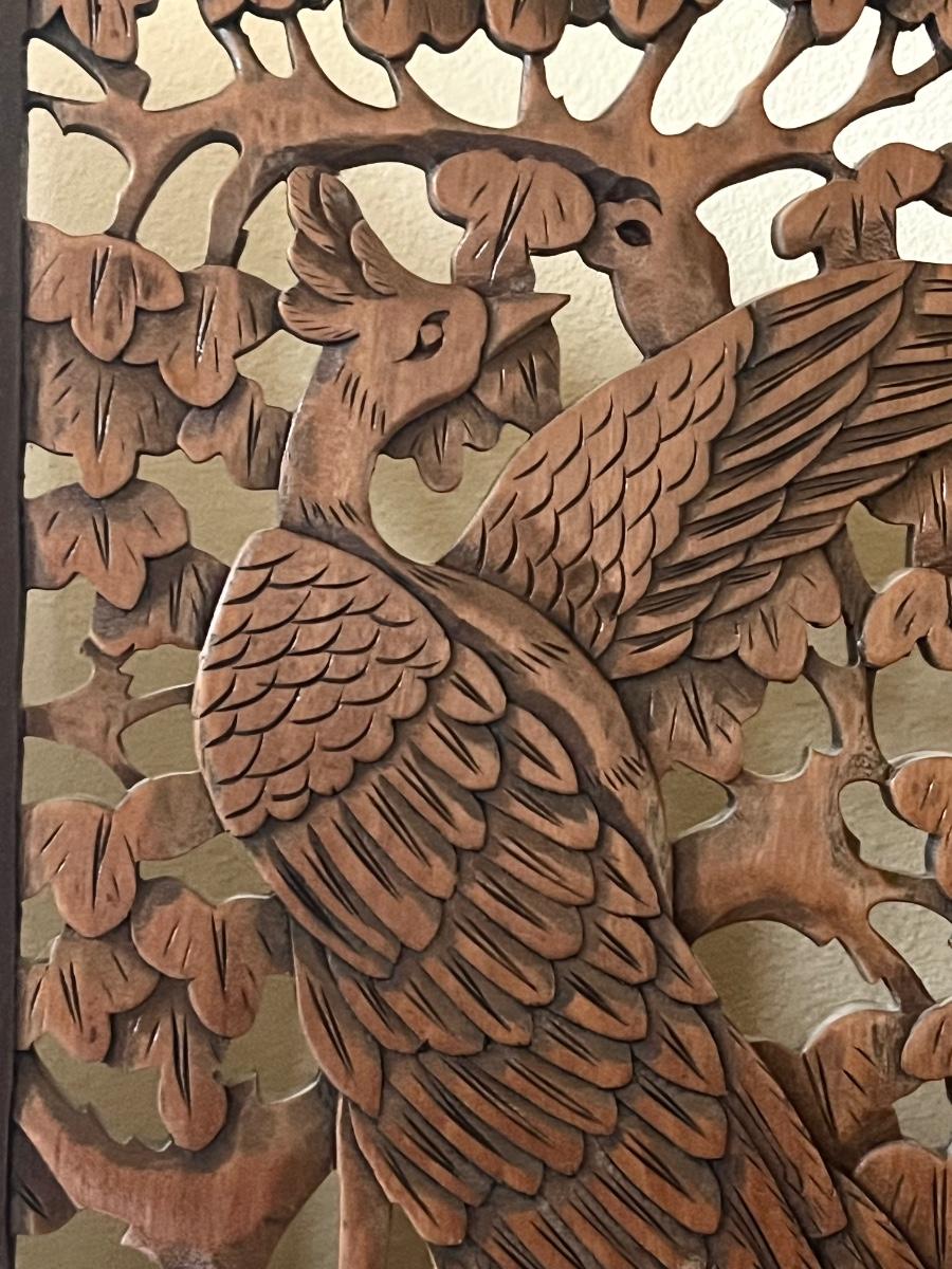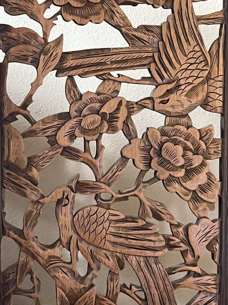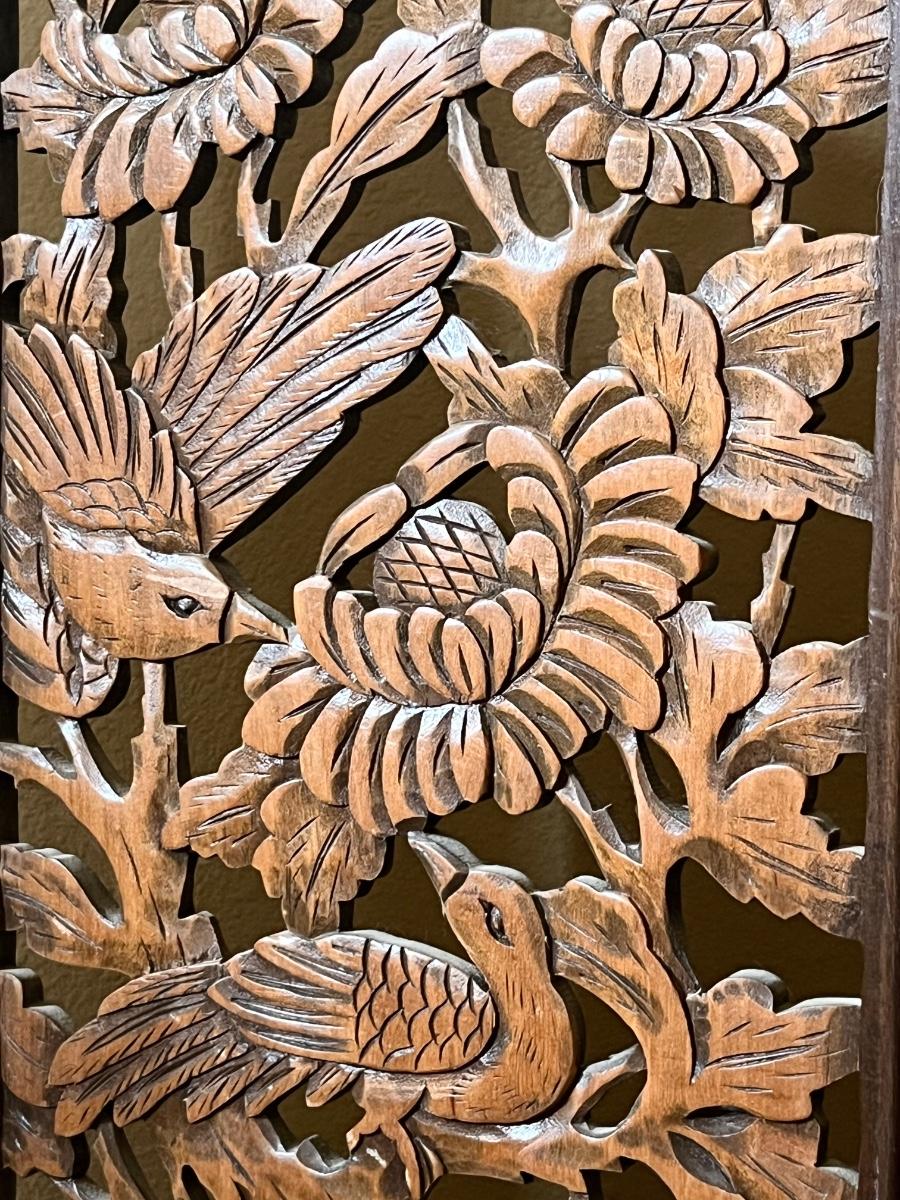 Bird Themed Carved Wood Four (4) Panel Decorative Screen