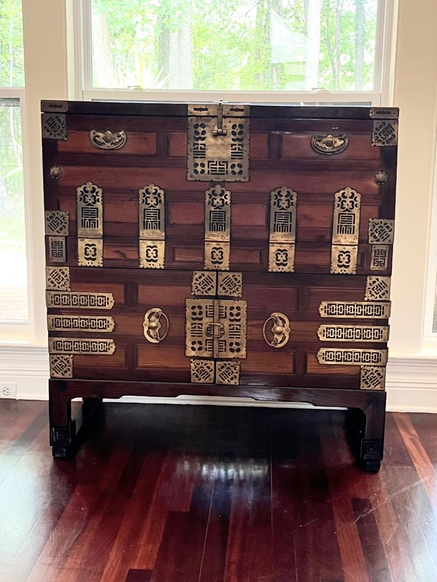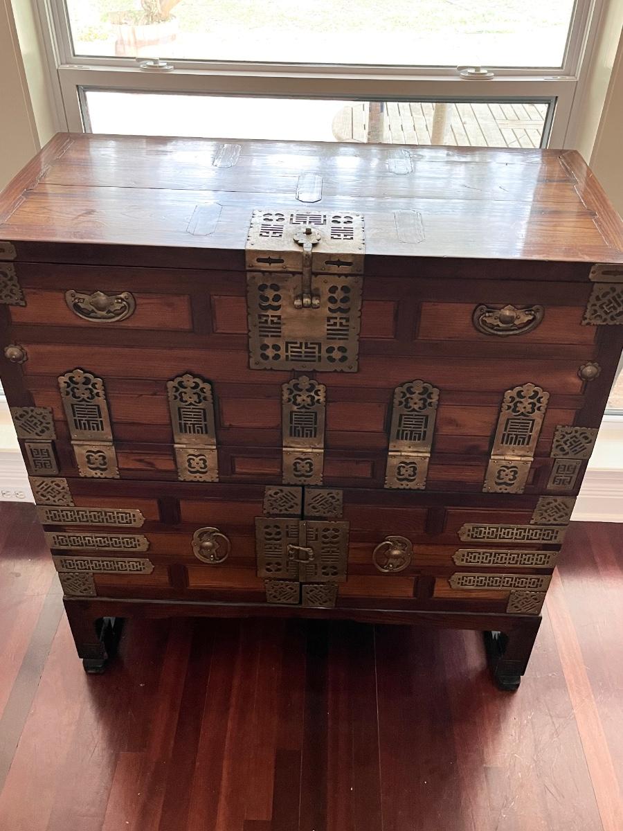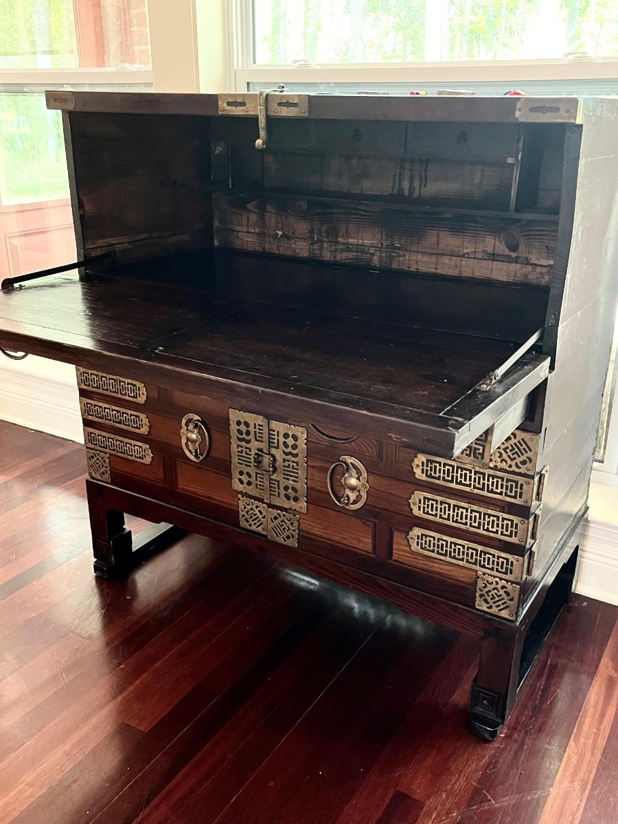 Vtg. Oriental Solid Wood Chest/Desk /Secretary With Brass Accents ~ Heavy ~ Excellent