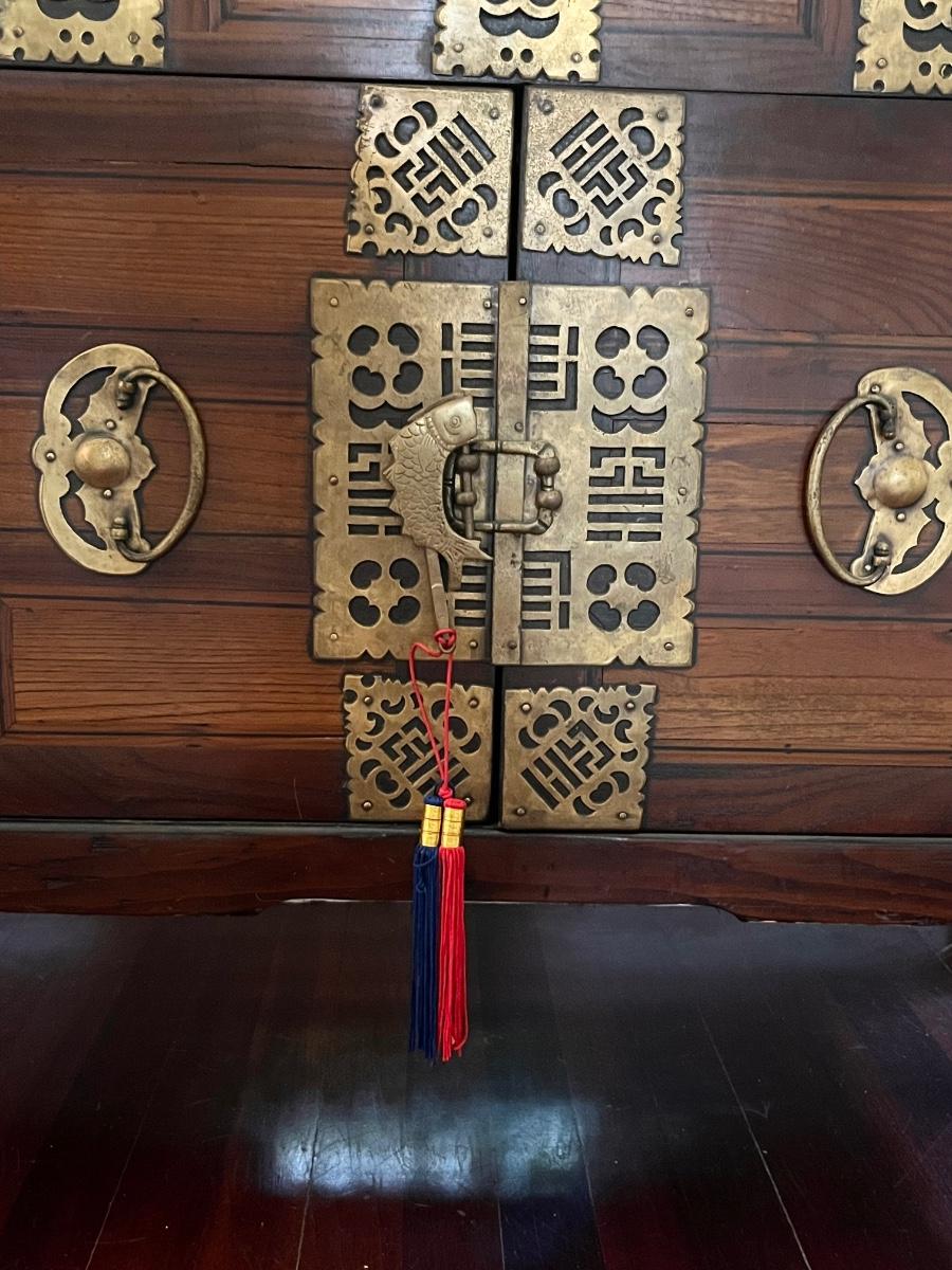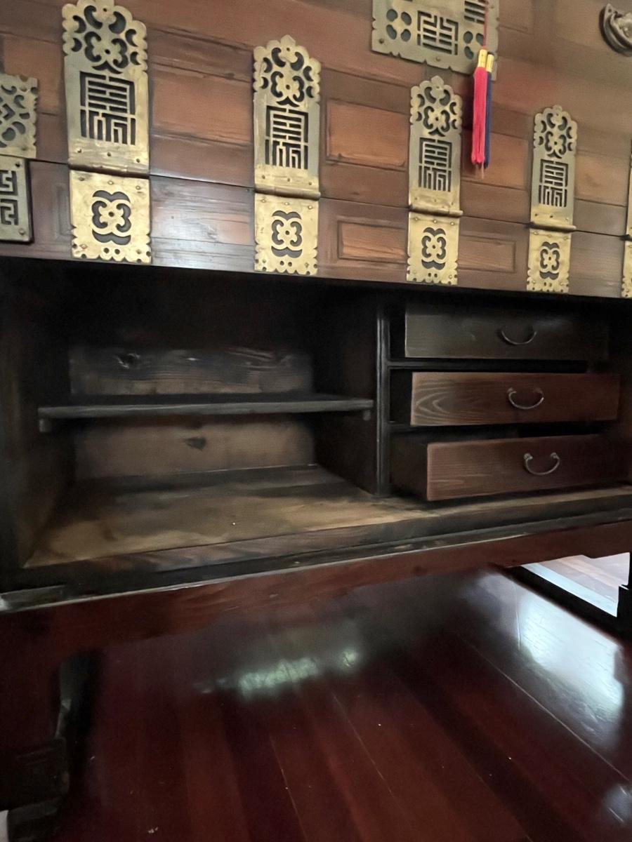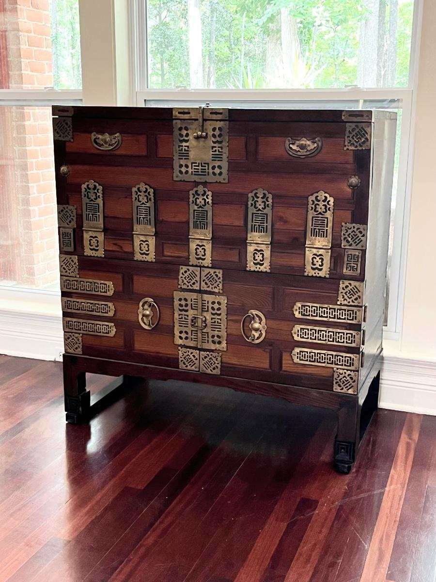 Vtg. Oriental Solid Wood Chest/Desk /Secretary With Brass Accents ~ Heavy ~ Excellent
