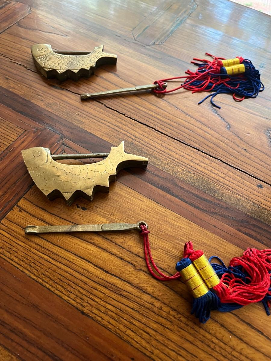 44” H x 41.5” W x 20” D ~ Comes with 2 Fish Locks with Keys ~ 2 hinges are missing top nail as seen in photo