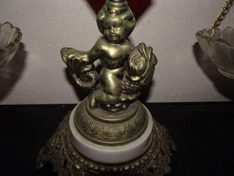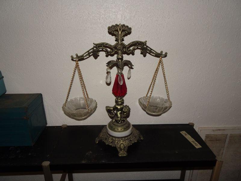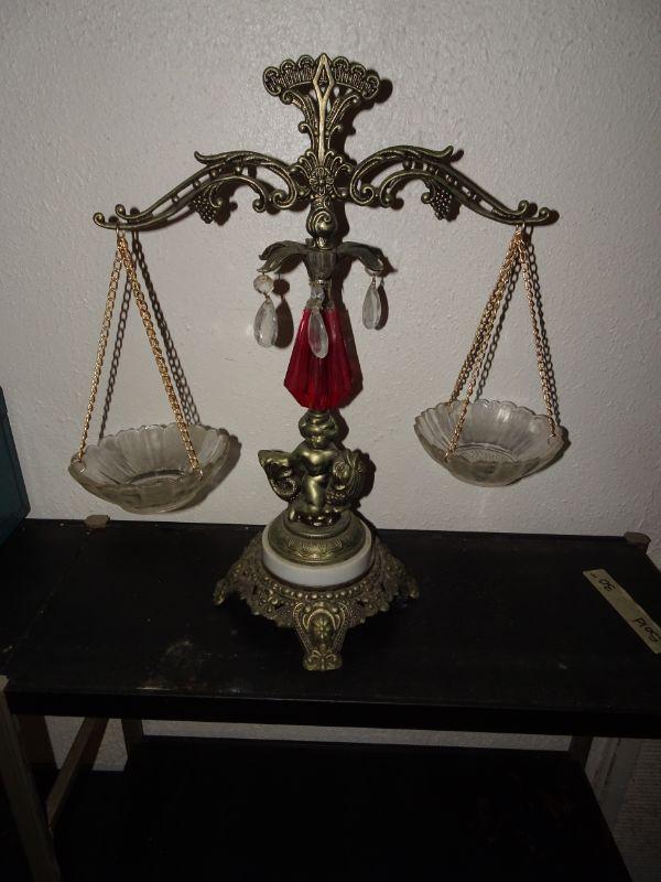 Vtg Ornate Scales of Justice Cherub Riding Fish