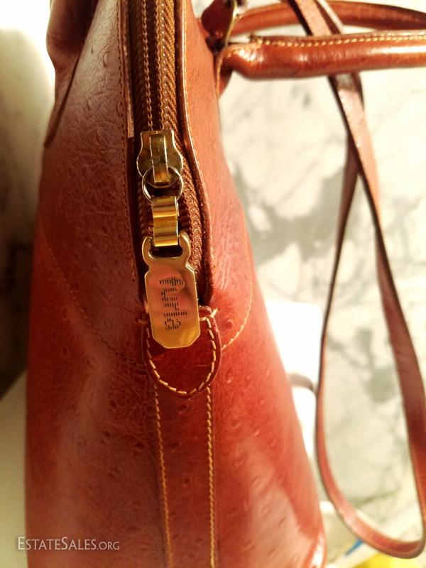 Vtg Ostrich leather Furla Cross body large camel color Bag made in Italy