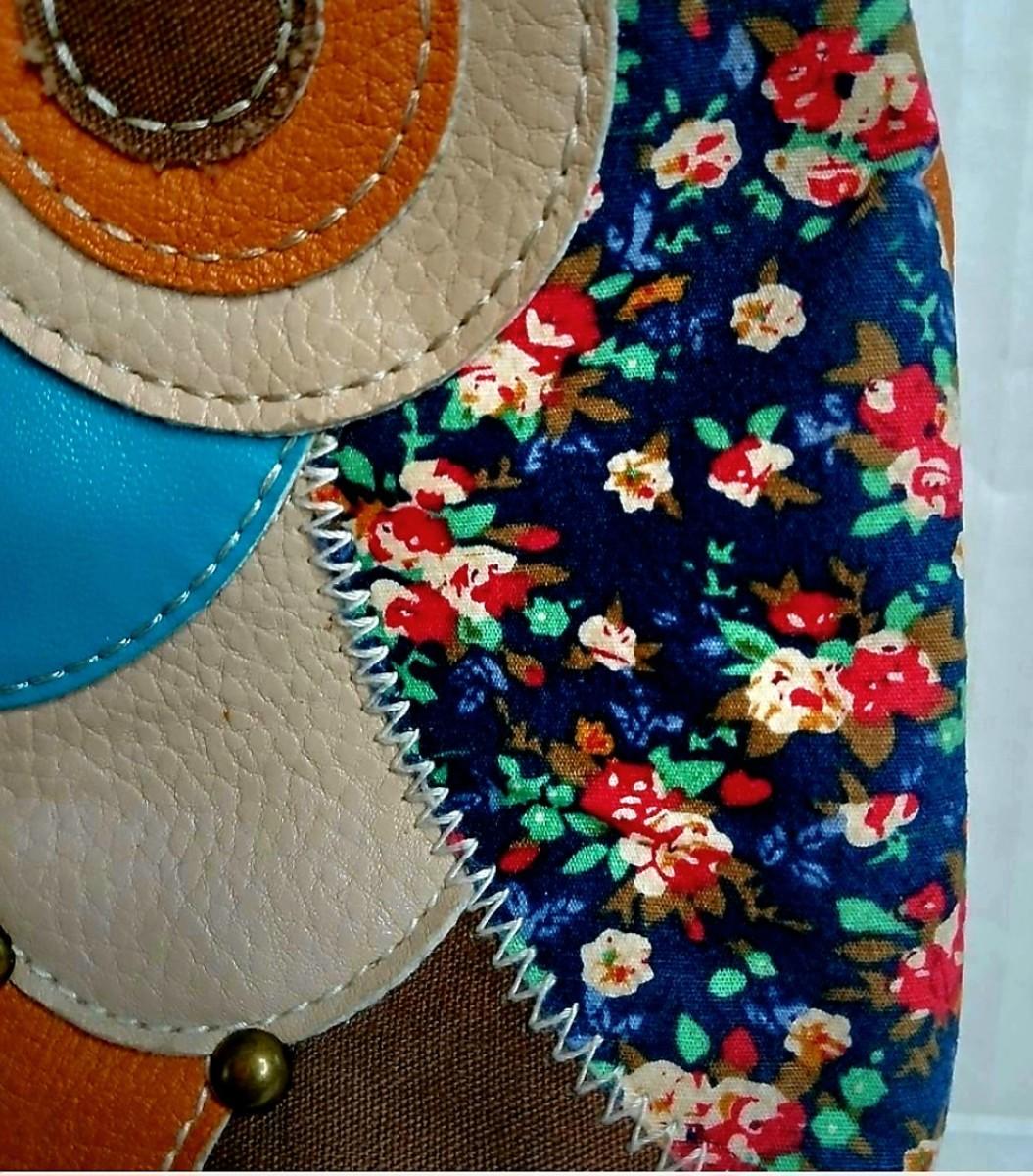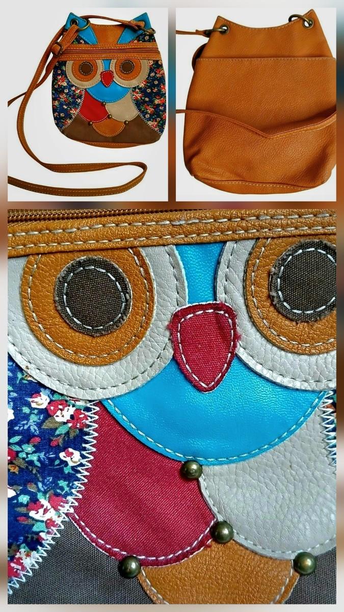 Like New Condition very special and beautiful. Vegan man made , calico fabric and adjustable strap. Front Zipper