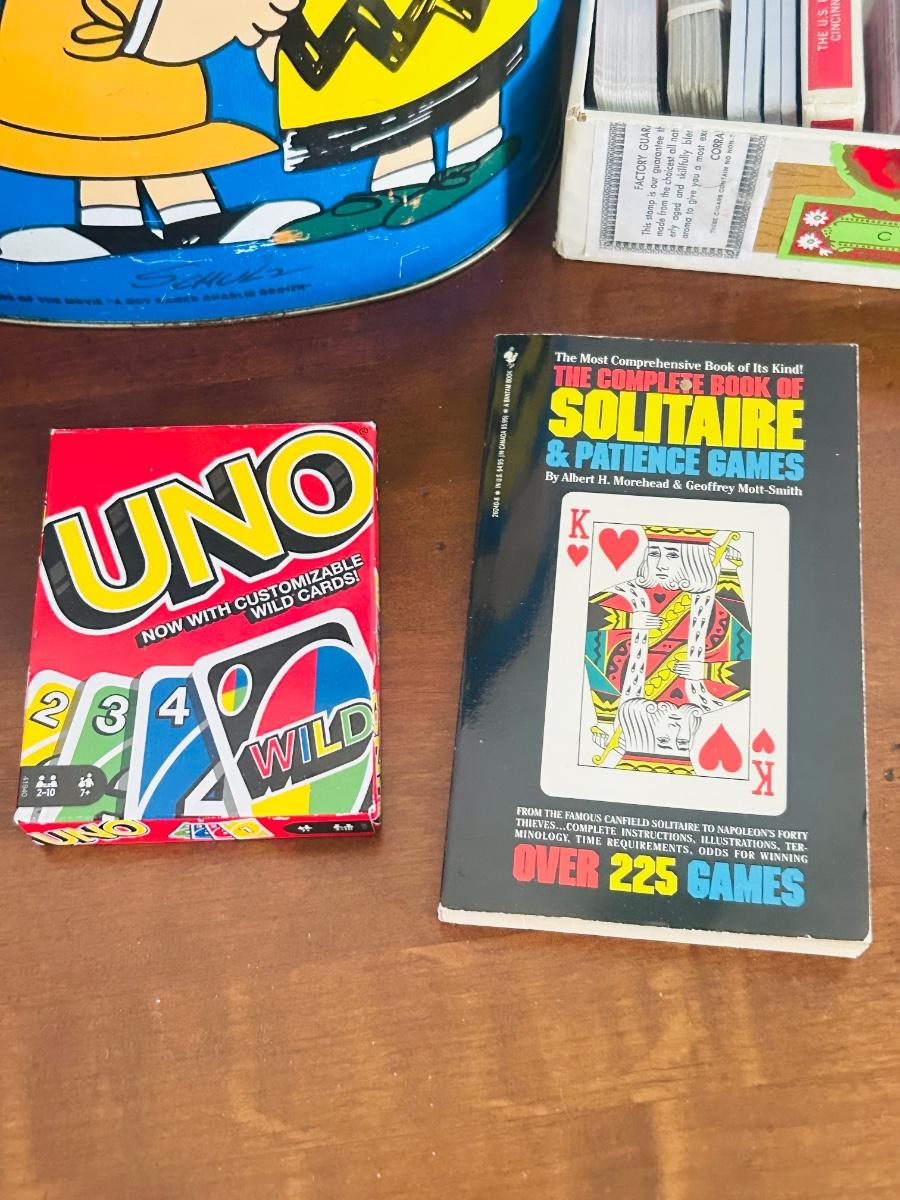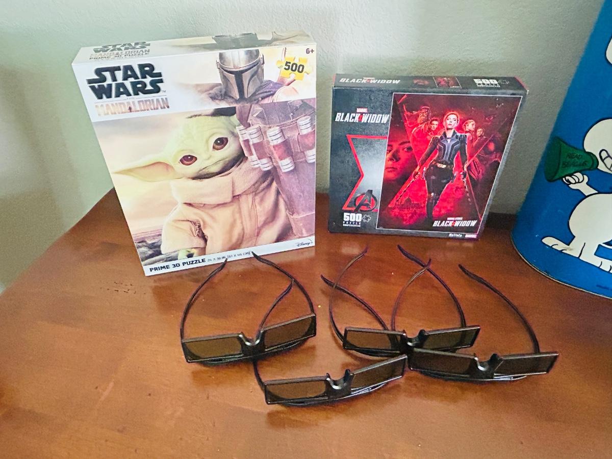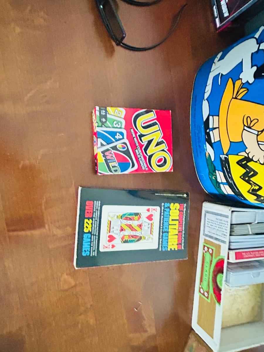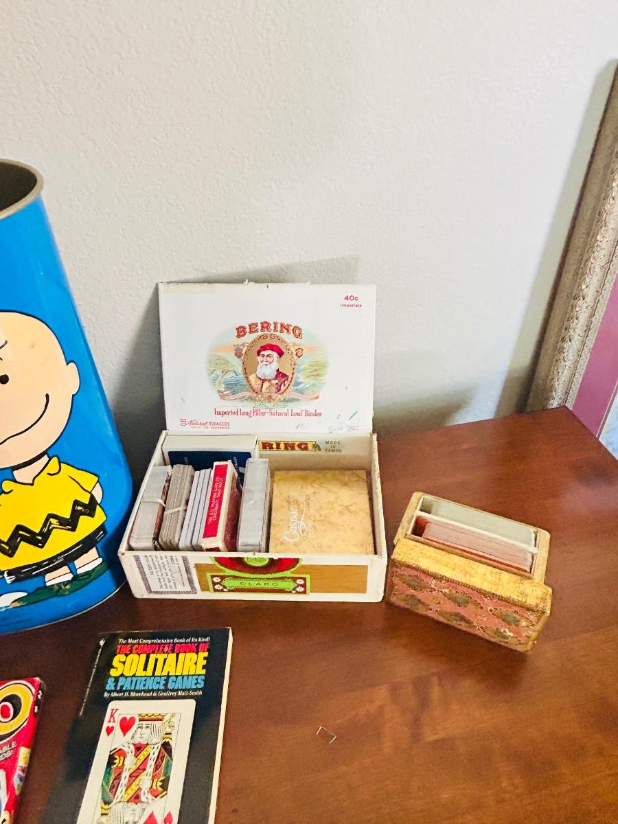 VTG PEANUTS TRASH CAN, SAMSUNG 3D ACTIVE GLASSES, PLAYING CARDS AND PUZZLES