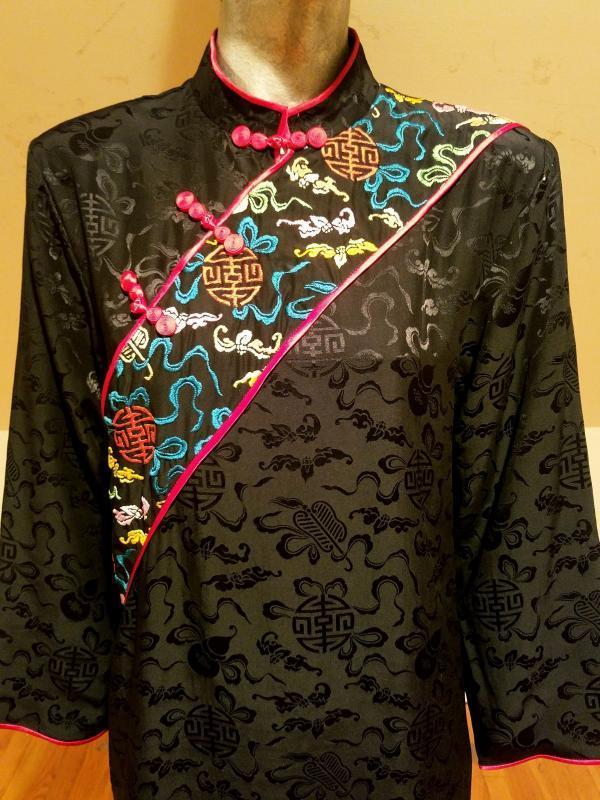 Vtg Peony silk Jacquard embroidered shift Macao dress