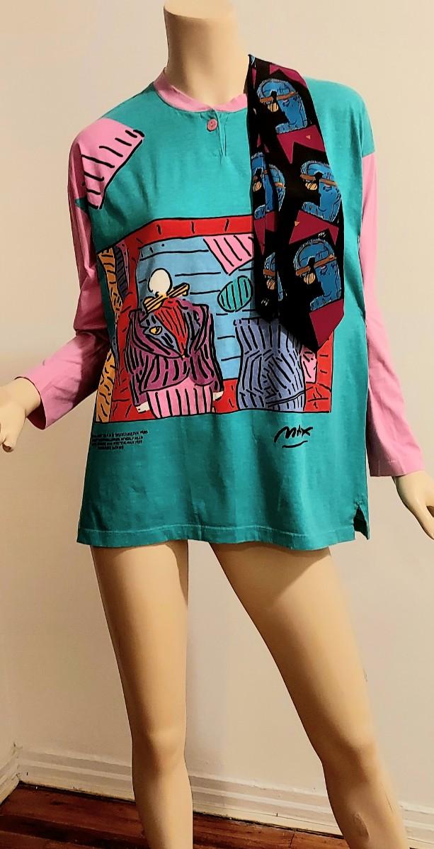This one is dead Stock Rare and Amazing NeoMax Peter Max All Rights Reserved 1988-89 Signed Large Cotton all printed Top. Rare and sought off