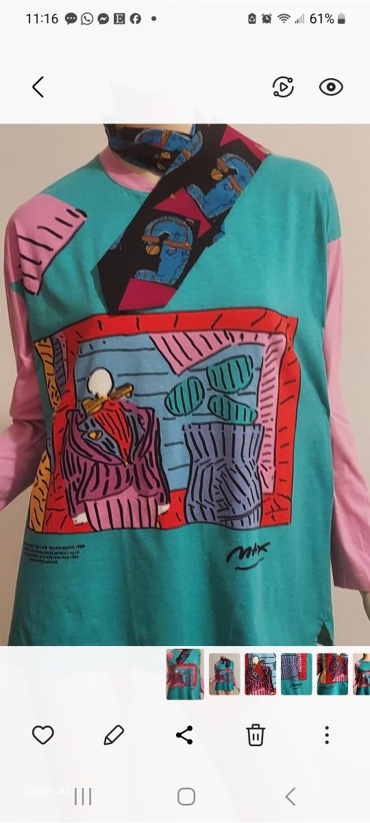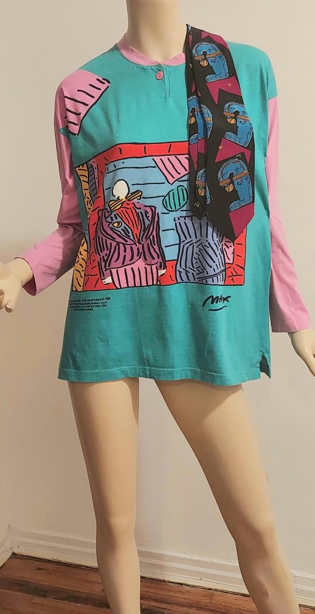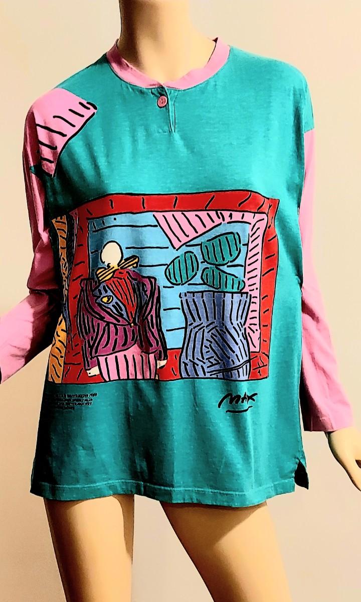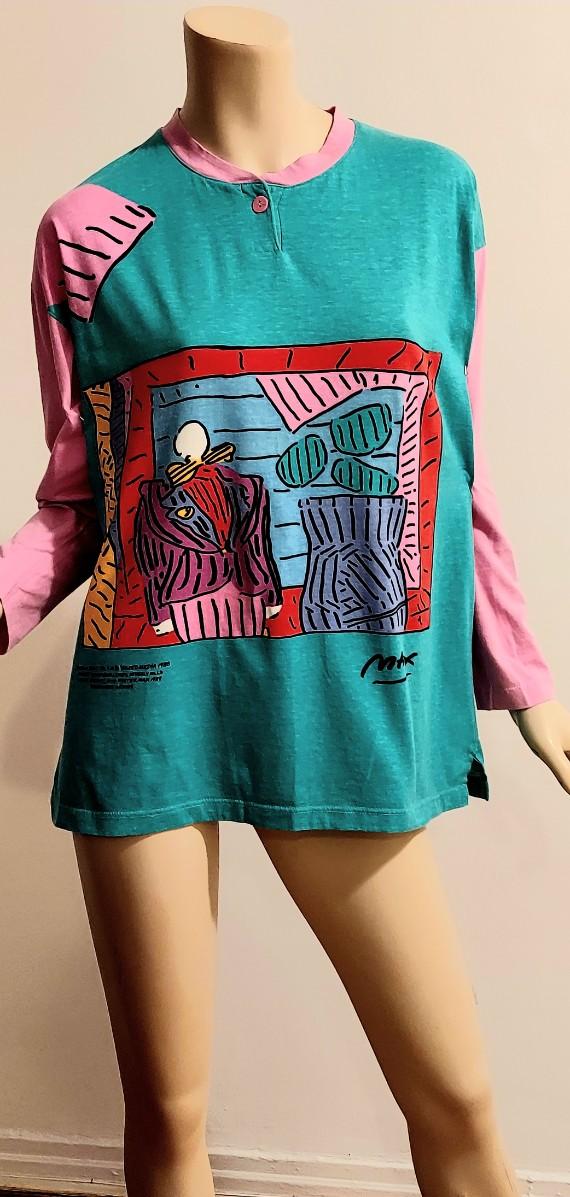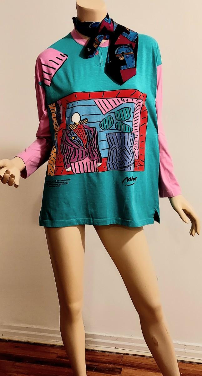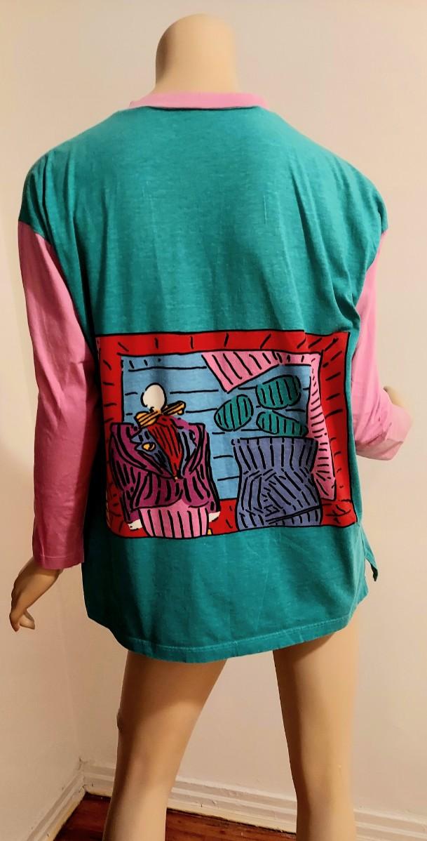 This one is dead Stock Rare and Amazing NeoMax Peter Max All Rights Reserved 1988-89 Signed Large Cotton all printed Top. Rare and sought off