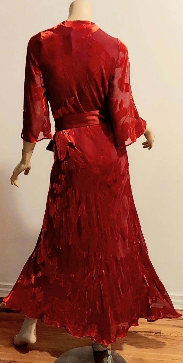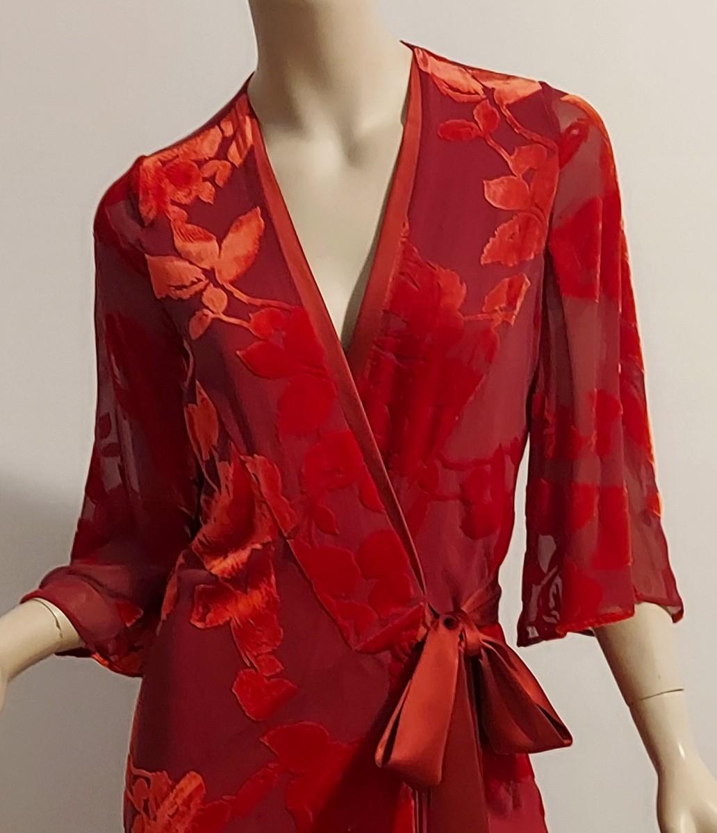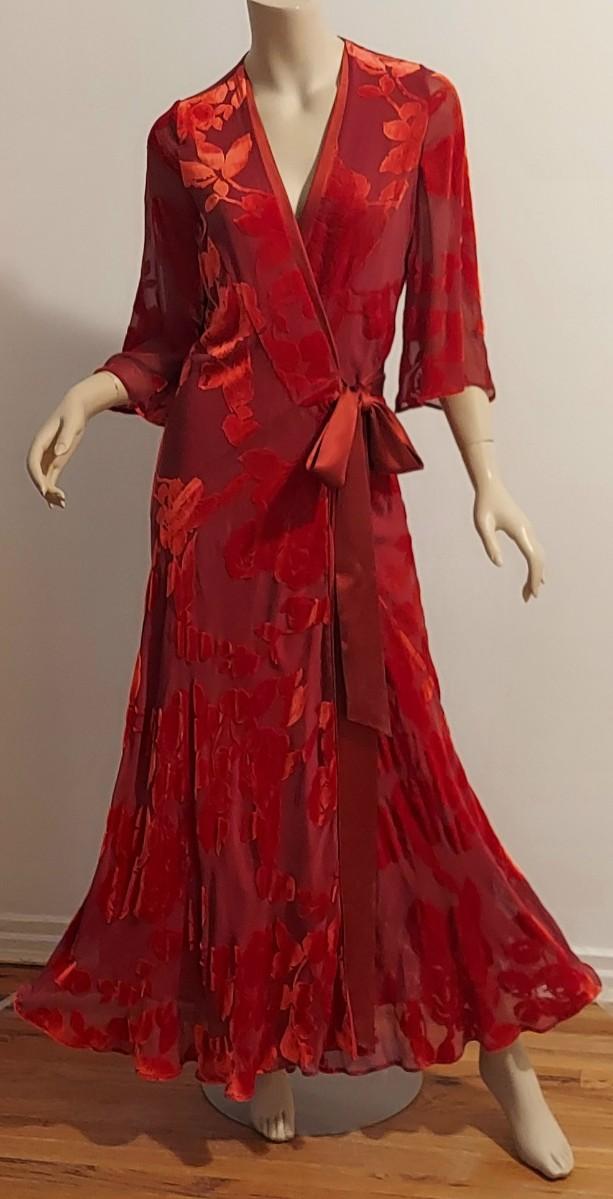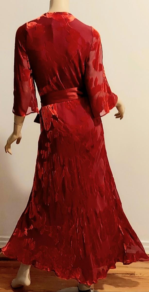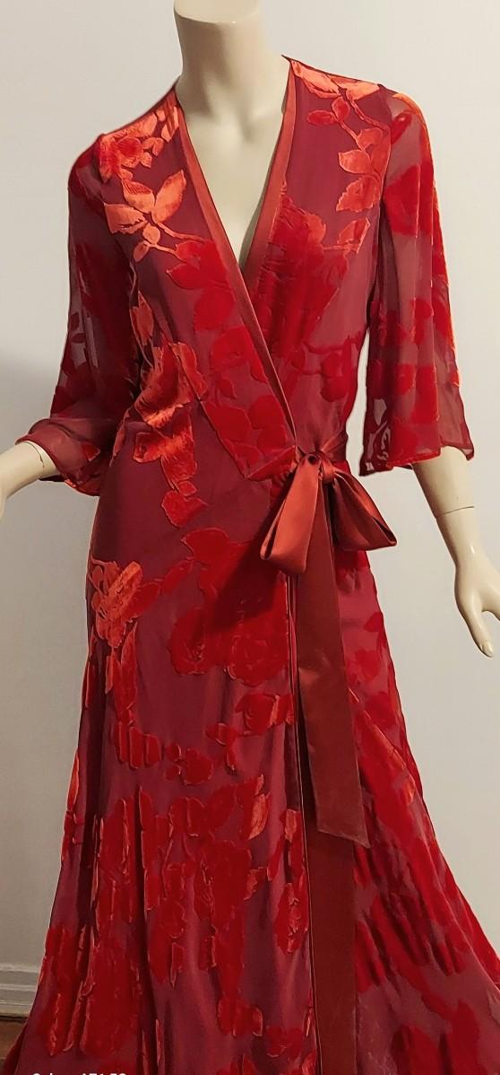 Just Amazing Never Worn Galvan Lindon Red Lipstick ?Maxi wrap dress Burnout Velour on Voile. To Die for. Bell Sleeves of Velour Devore