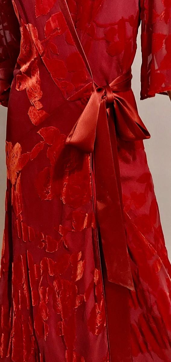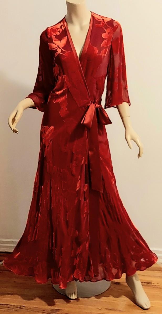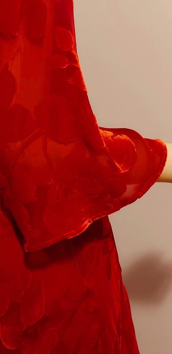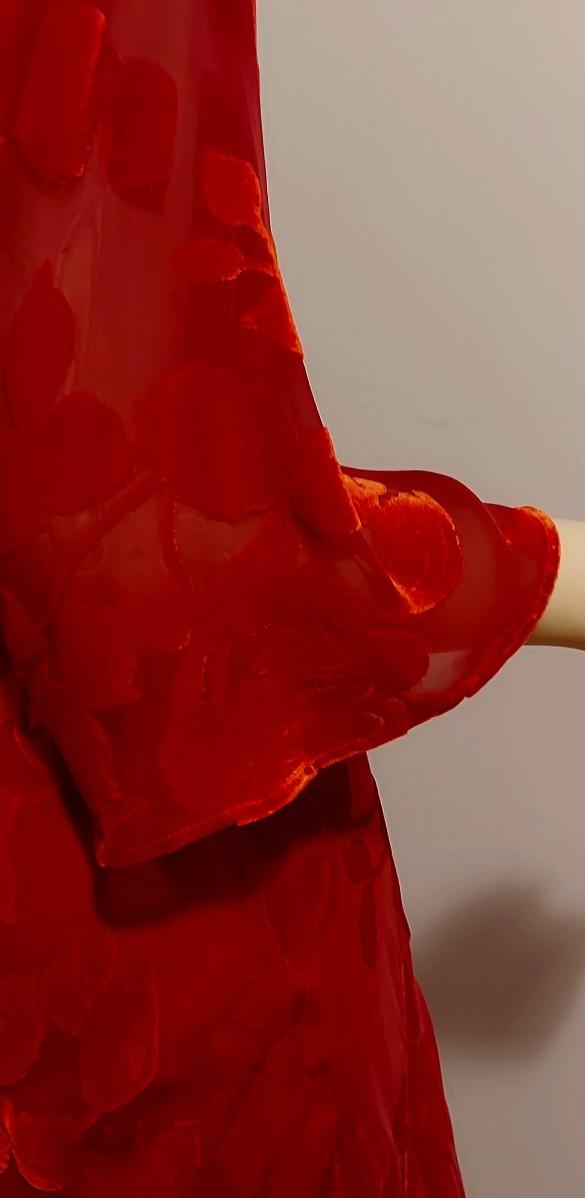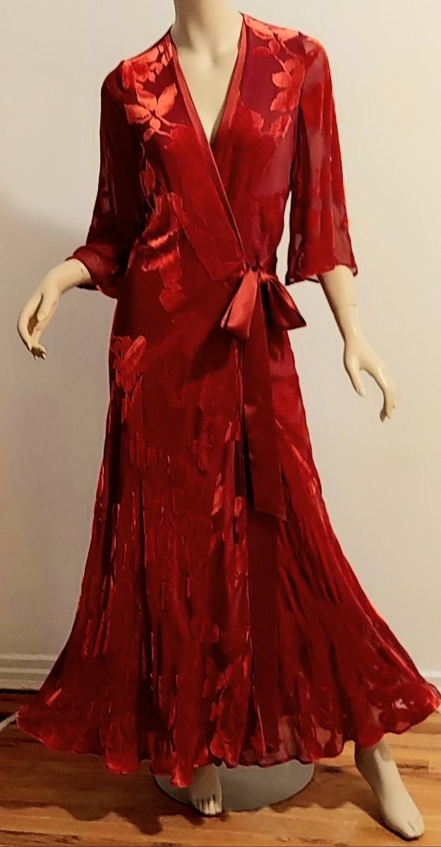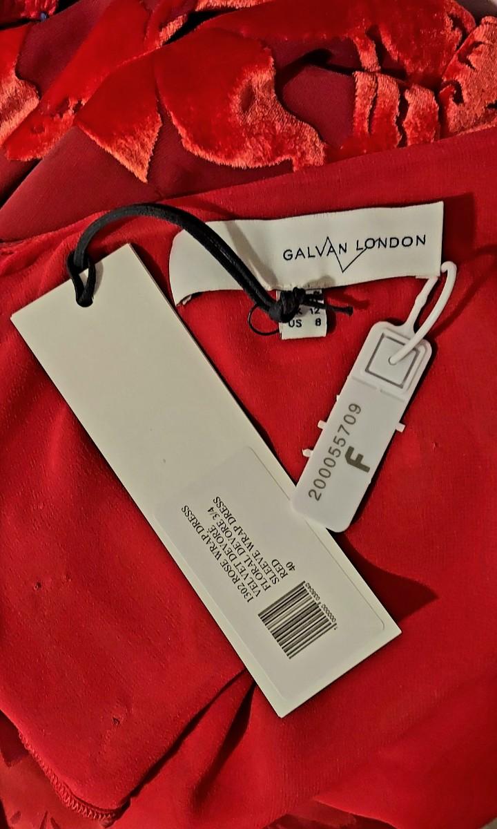 Just Amazing Never Worn Galvan Lindon Red Lipstick ?Maxi wrap dress Burnout Velour on Voile. To Die for. Bell Sleeves of Velour Devore