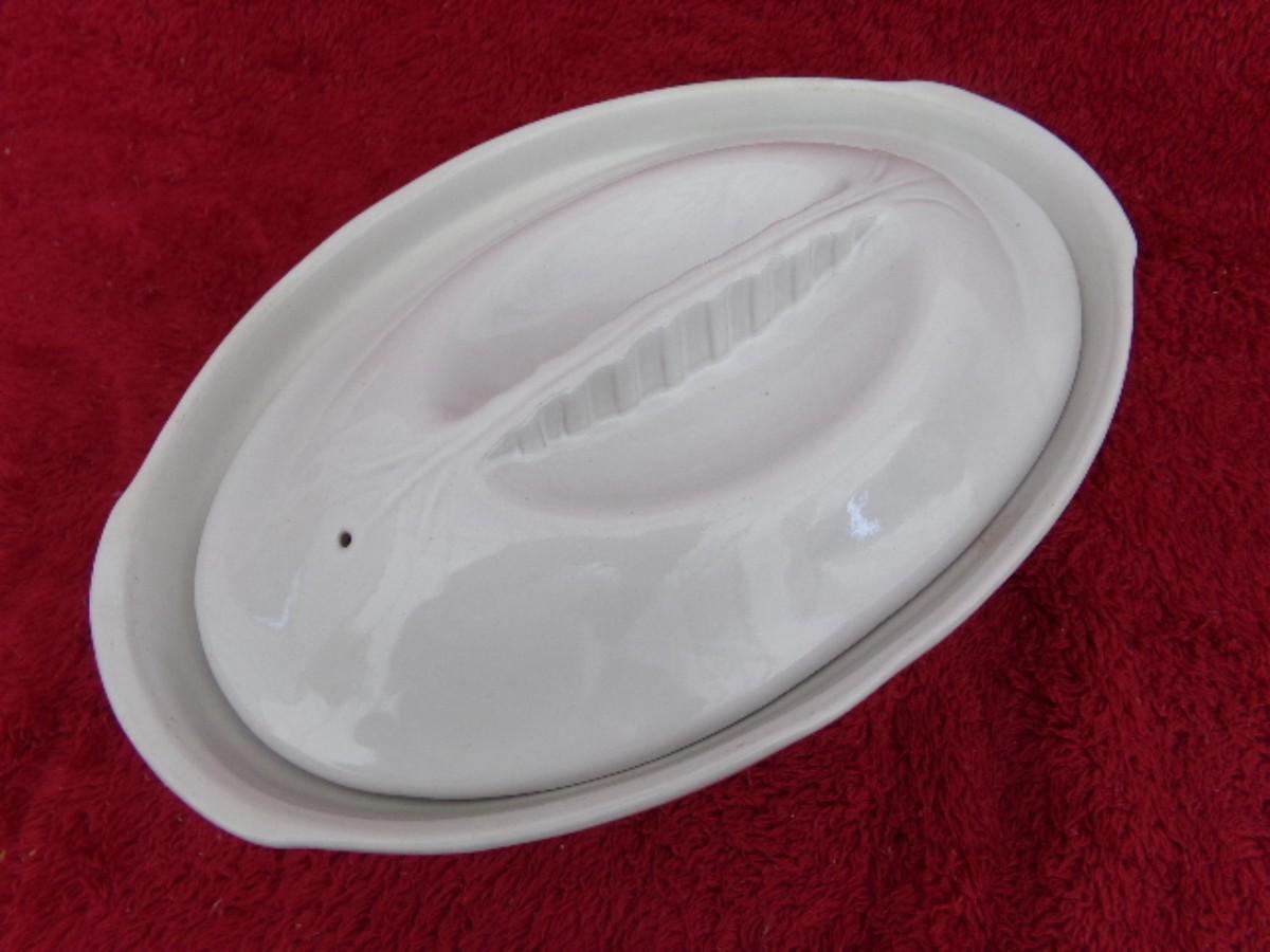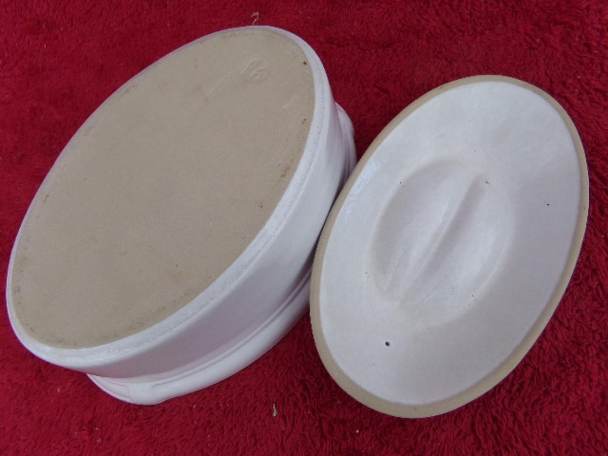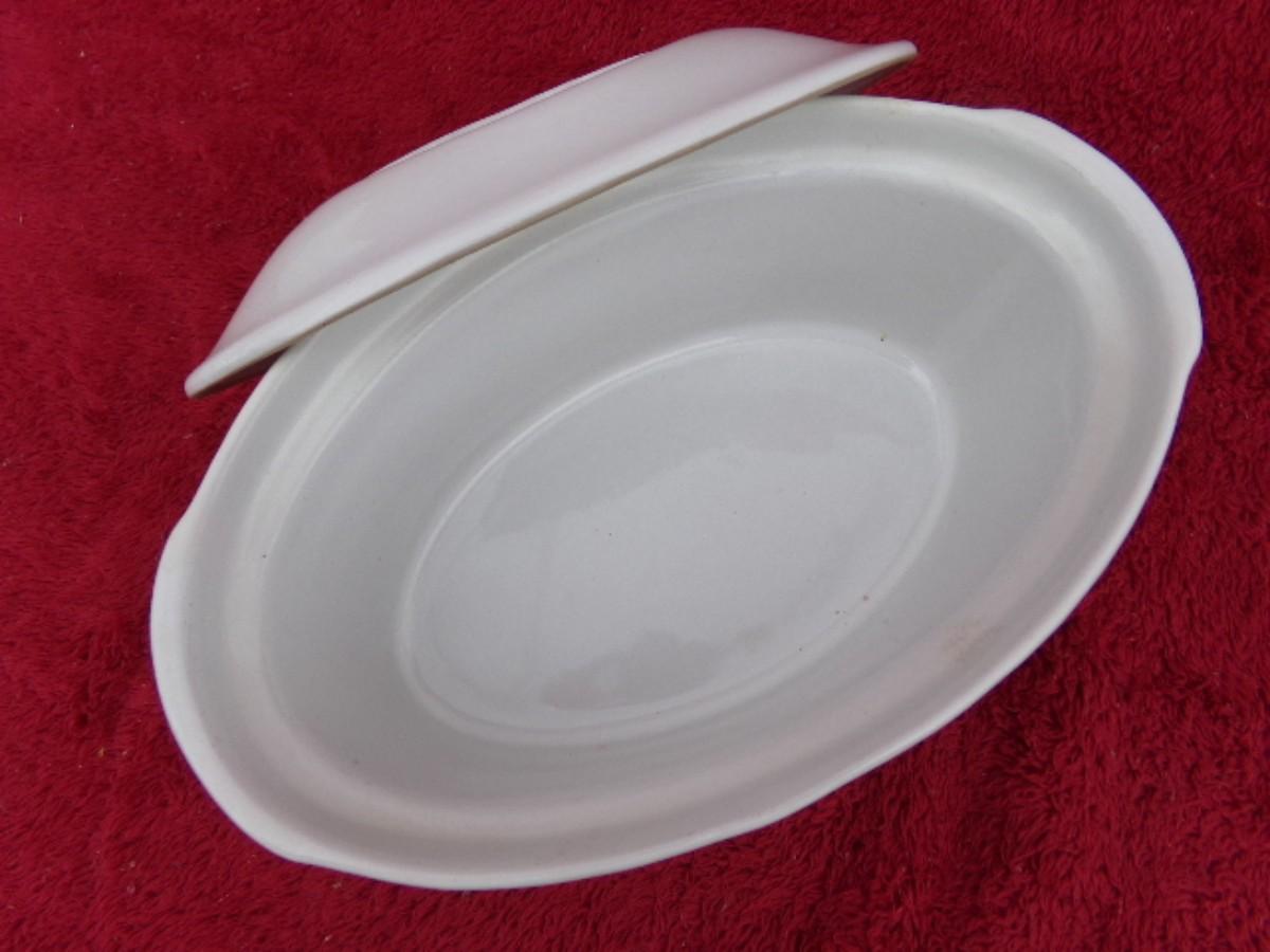 VTG Pfaltzgraff Village collection c.1970s as indicated by the f6 logo pressed into the bottom. Oval covred casserole made of stoneware w/white glazed surfaces. Shiny bright inside & out as if it’s never been used. Immaculate.
