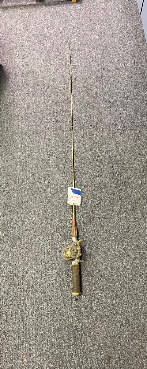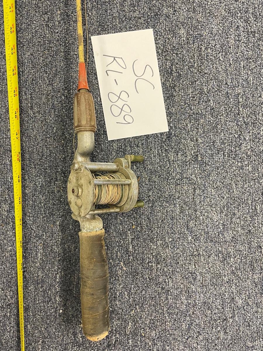 Vtg Pflueger Akron model 1893 fishing reel and metal rod
