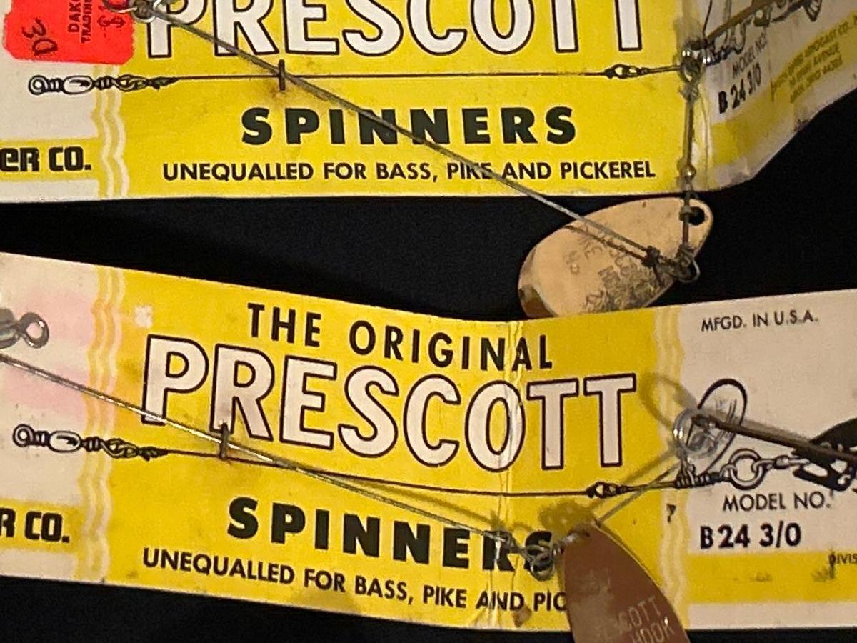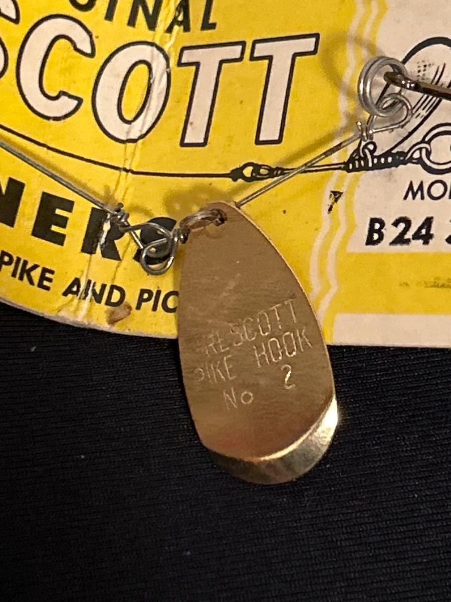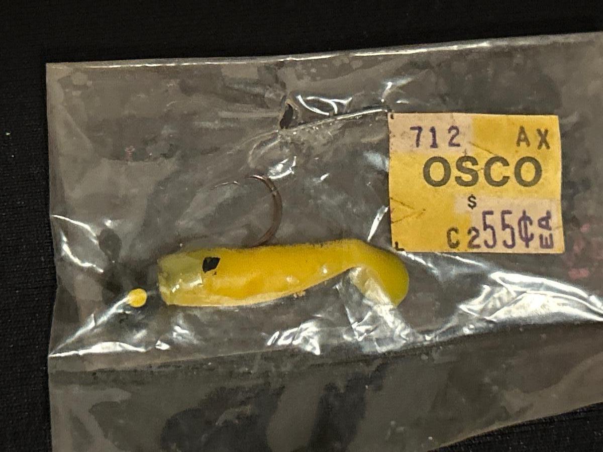 Lots of vintage still in the packaging spinners, sinkers, Rigs, Mister Twister. Lures of many sizes, colors, even FEATHERS!! & jigs etc. lure on the left says “Natural Ike”, other is unbranded.