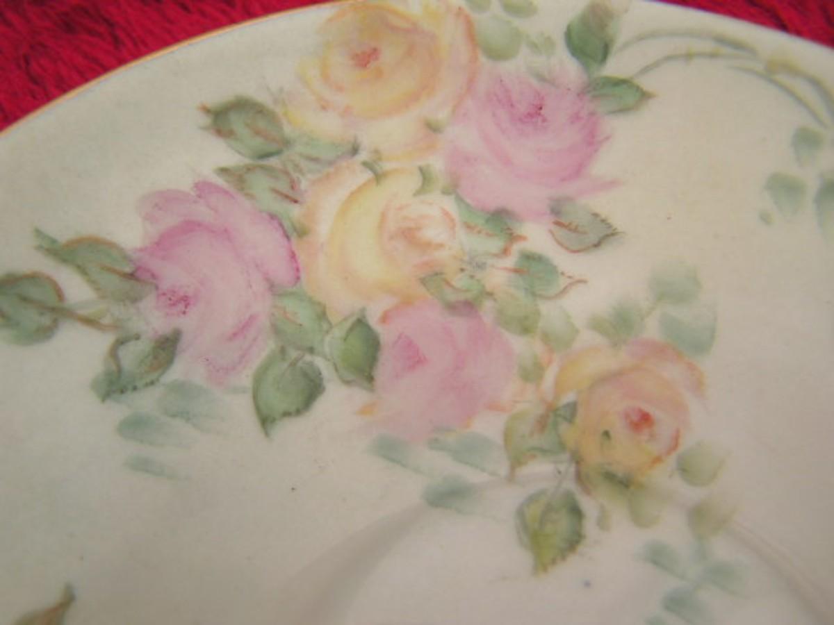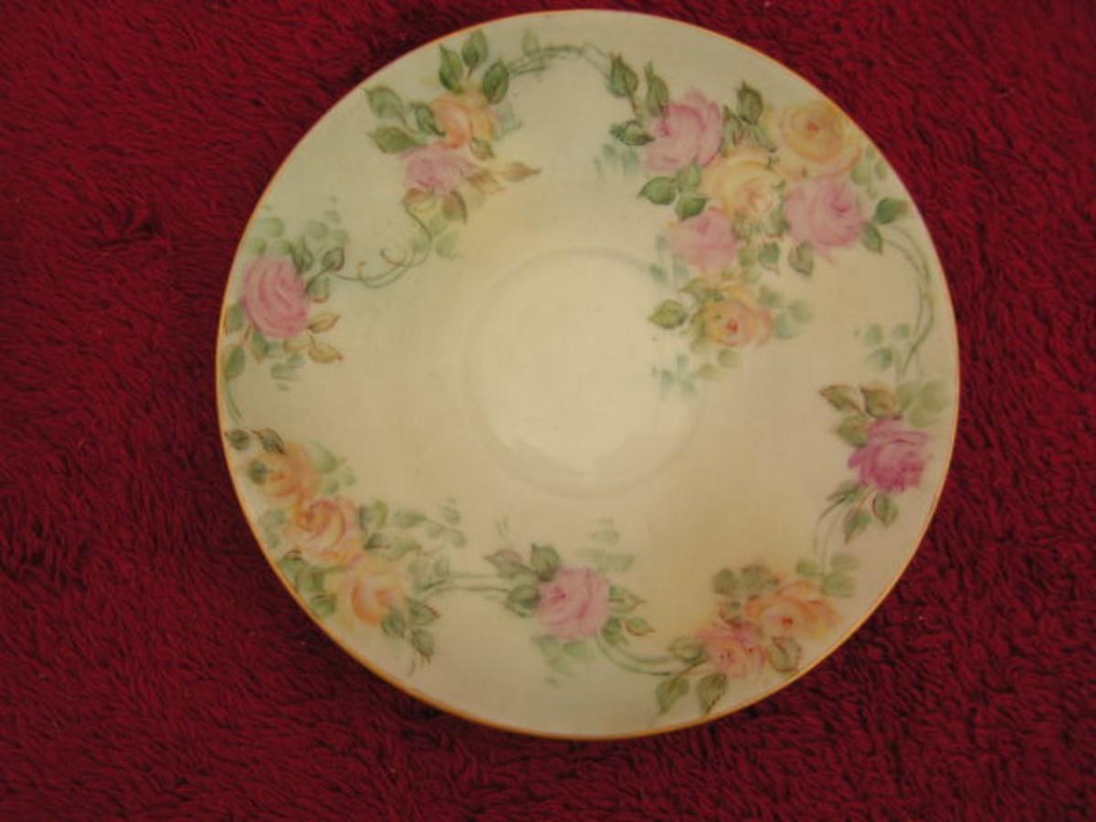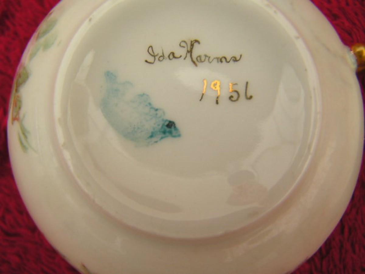 Vintage porcelain cup & saucer set w/ roses & gold trim, most likely from Europe in the 1950s. This set is personalized and dated 1956.