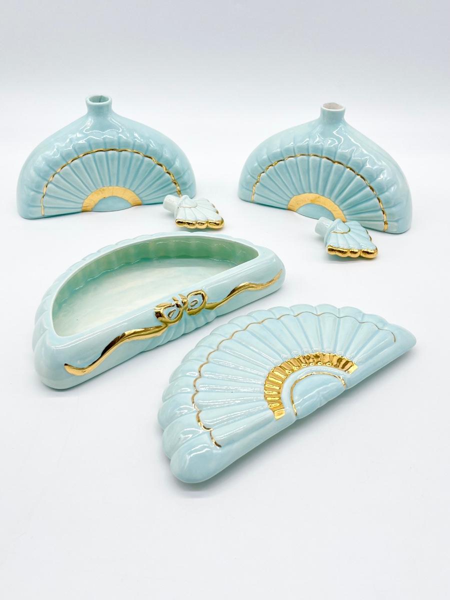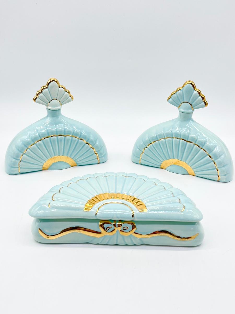 Includes = (2) Lidded Perfume Bottles 6” H x 7” W ~ (1) Lidded Jar 2” H x 8” W