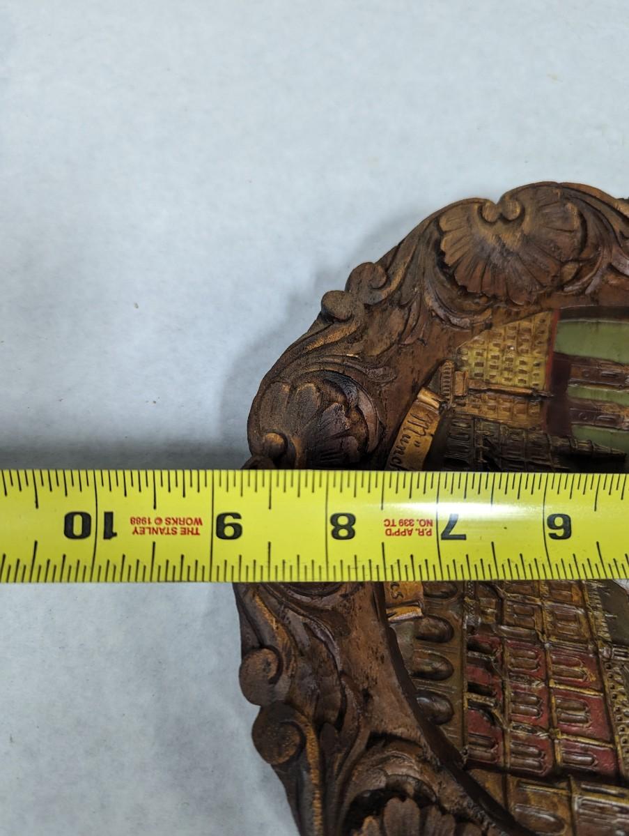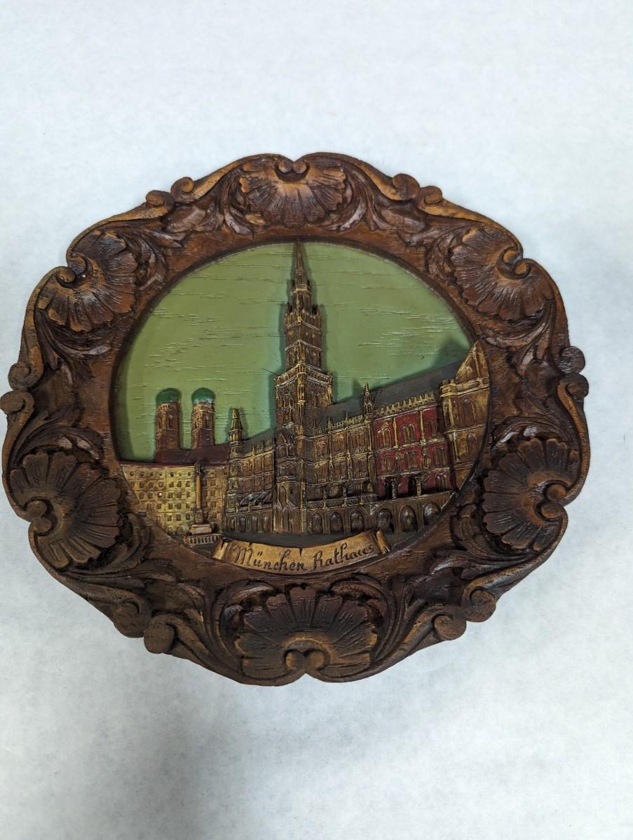 Vtg Rathaus München Germany 3-D Souvenir Plate Handpainted Pressed Wood