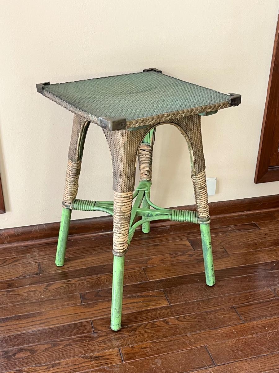 Vtg. Rattan & Wicker Rustic Bistro Table