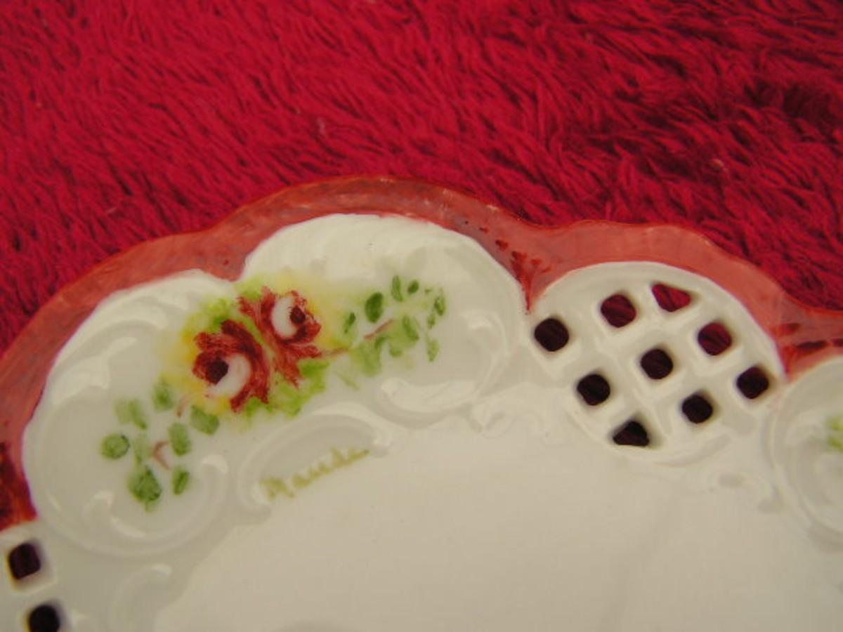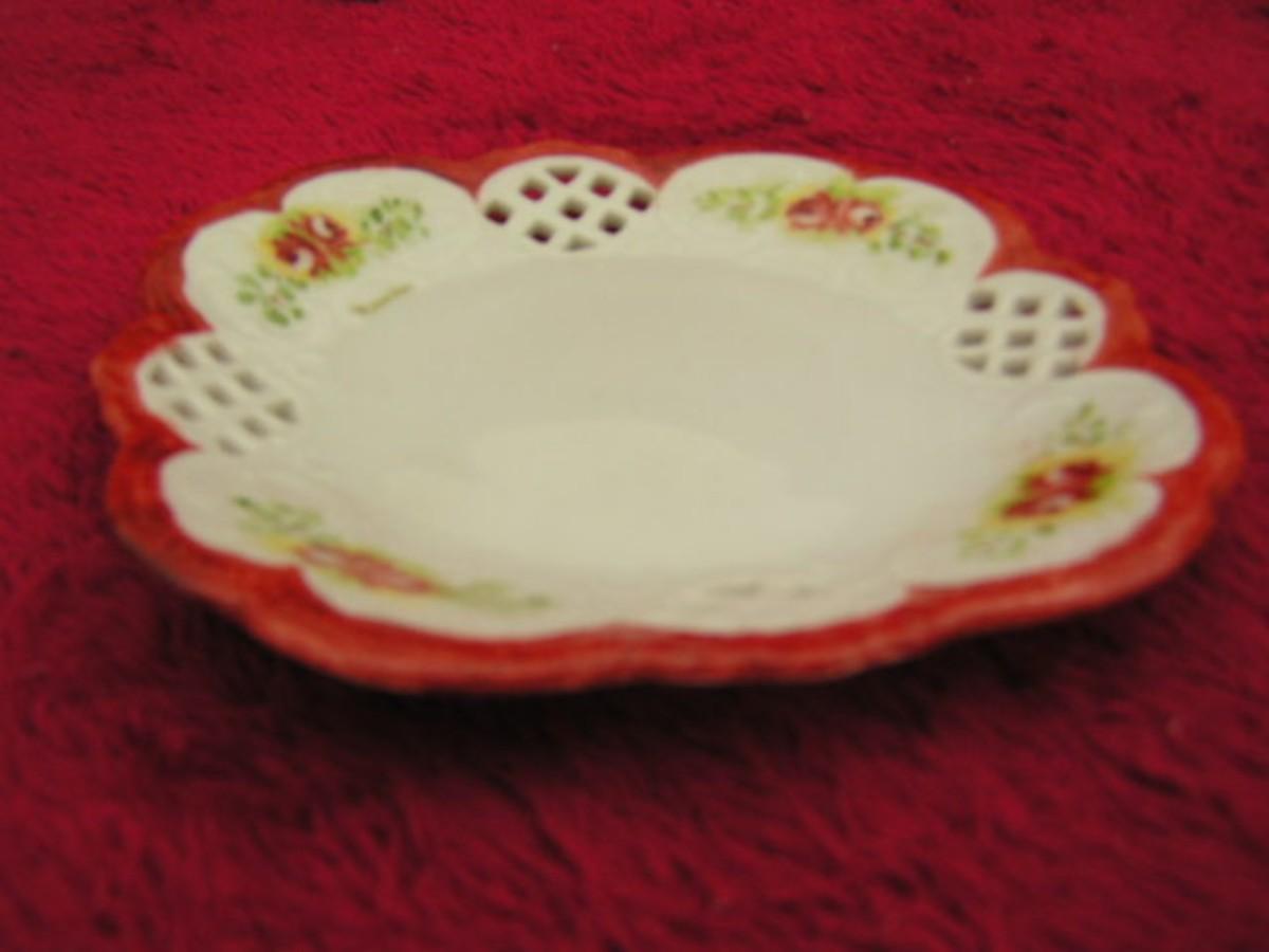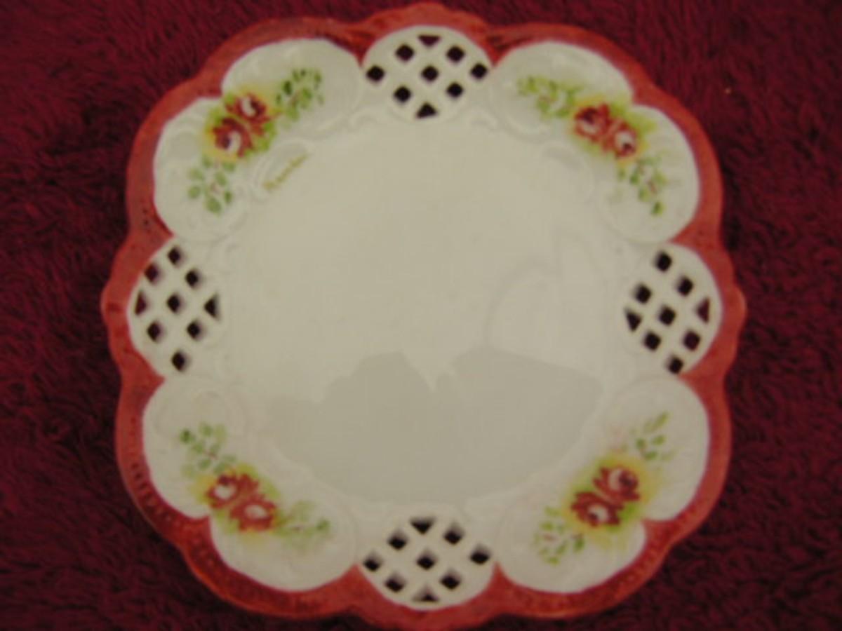 Vtg reticulated porcelain small dessert plate. Appears hand painted