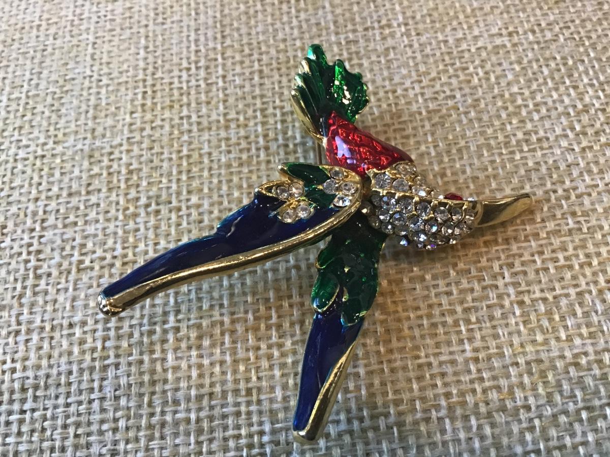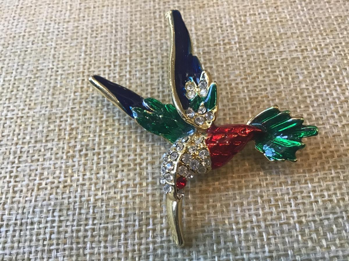 Vtg Rhinestone Enamel Hummingbird Brooch Pin