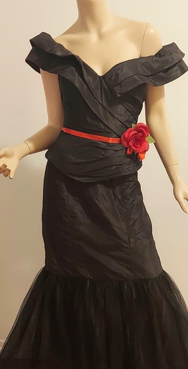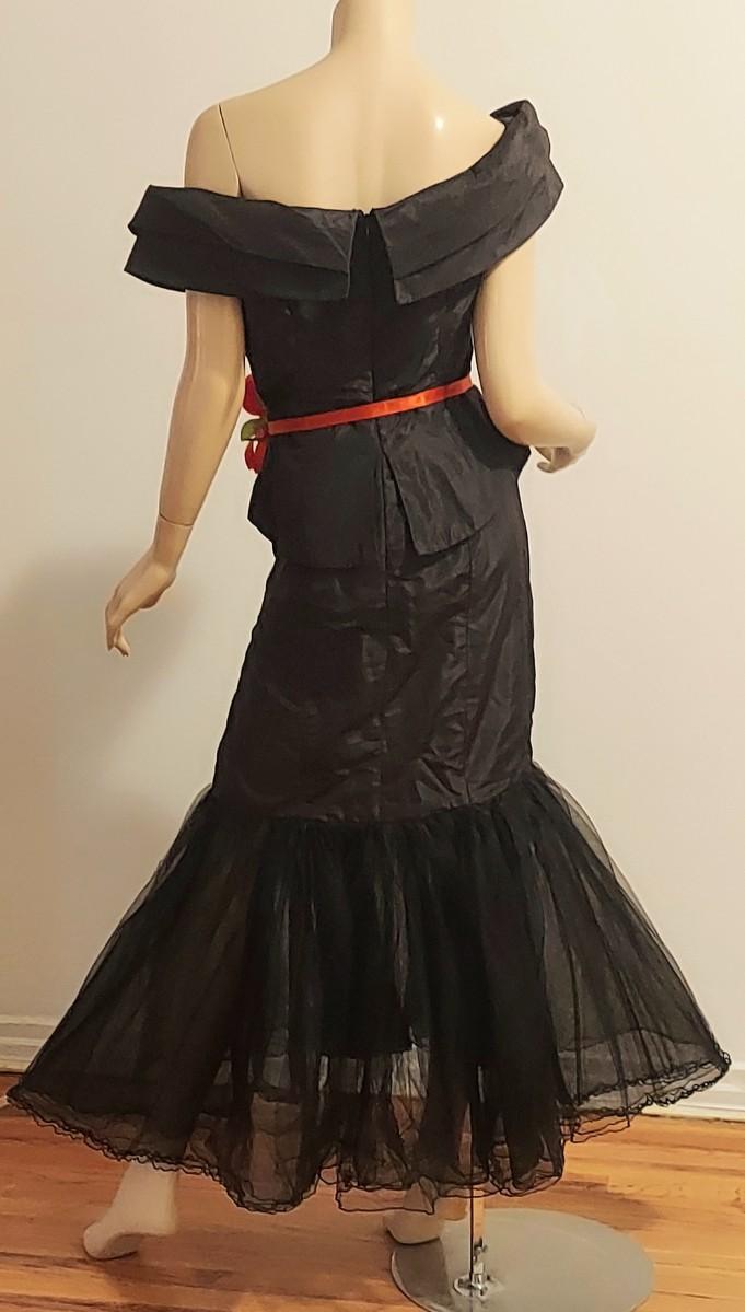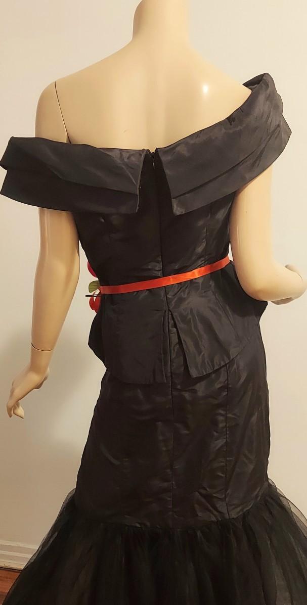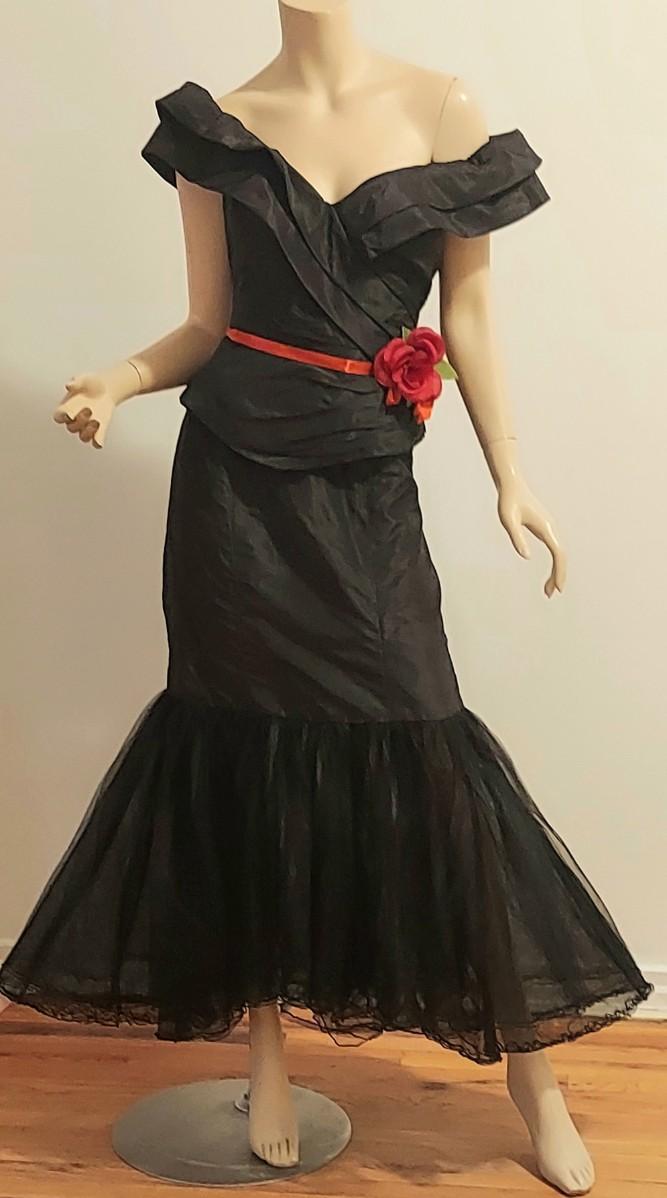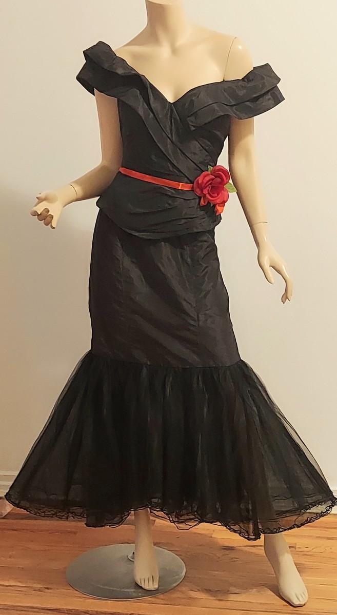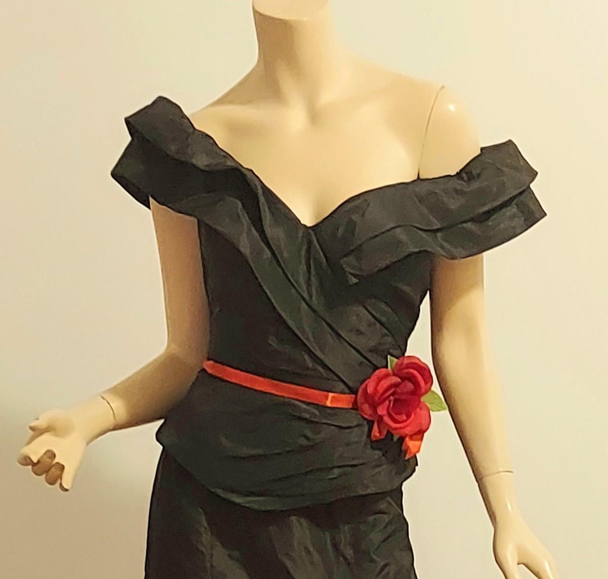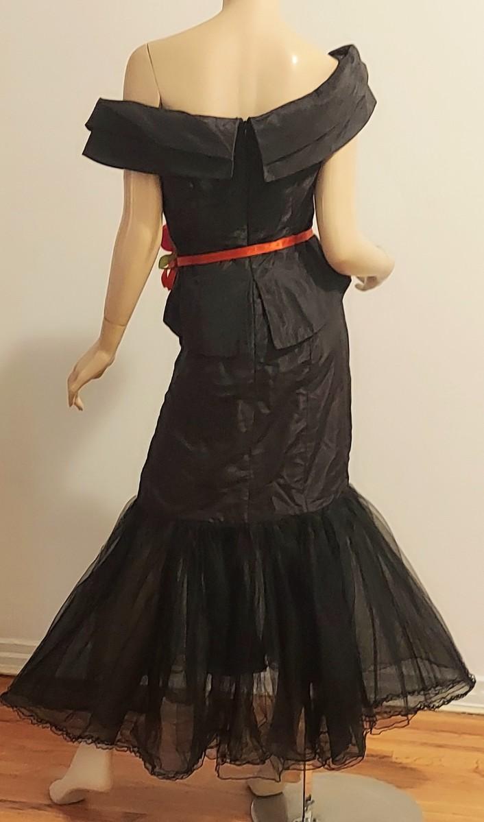 Vtg Rose Taft Couture Ball Gown Silk Red Sash