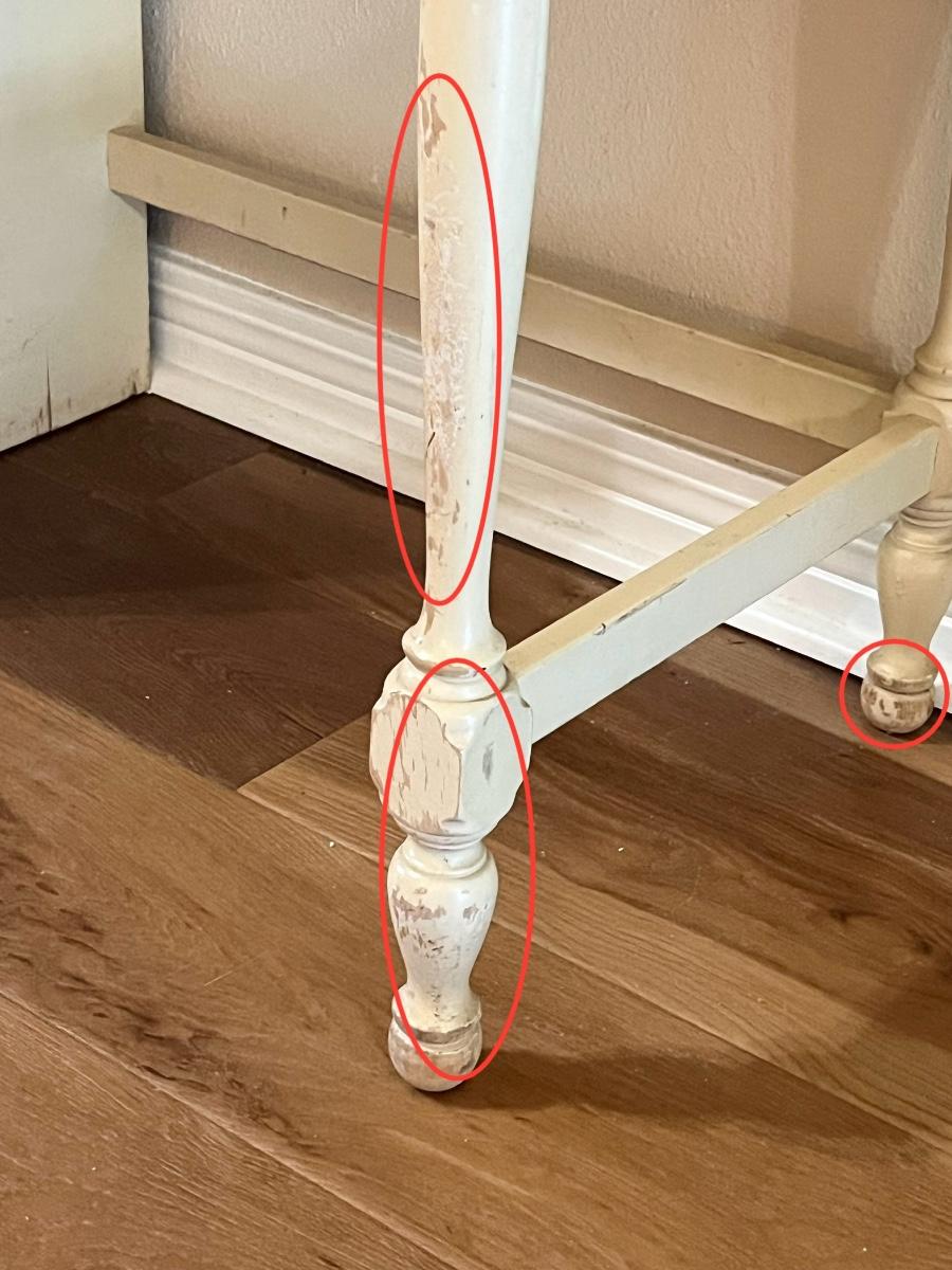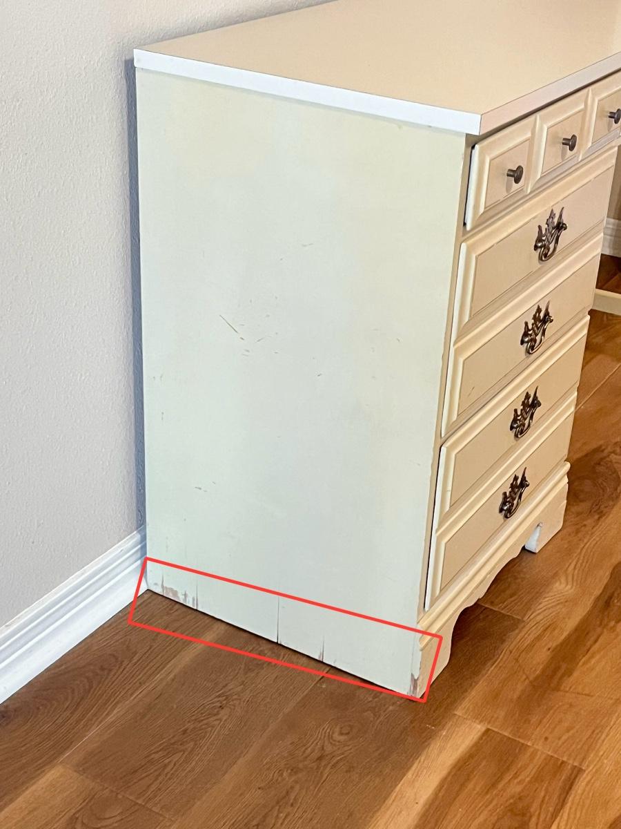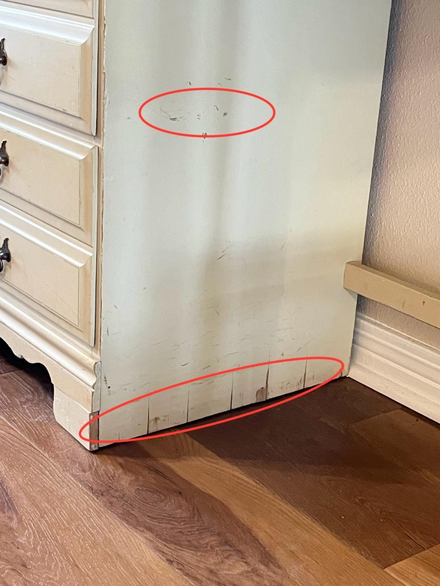 30.5” H x 44” W x 17.5” D ~ Has scratches around the legs as seen in photos ~ 4 drawers slide easily