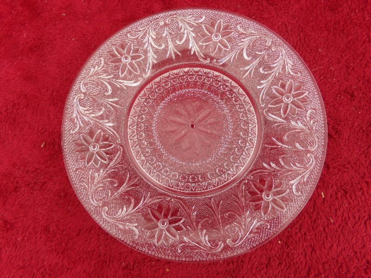 VTG sandwich serving plate. Looks like pressed crystal? Possibly from Duncan & Miller Glass Works. About 10-1/4" dia. VG to EX condition.