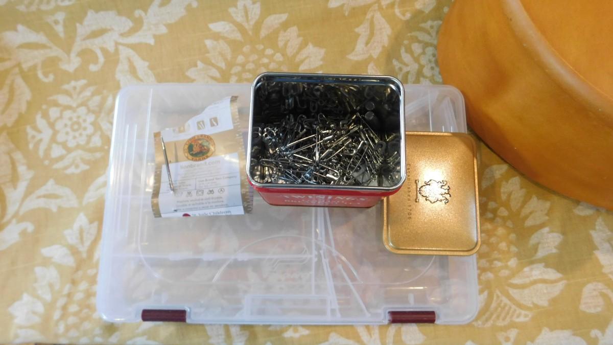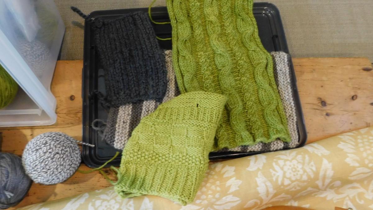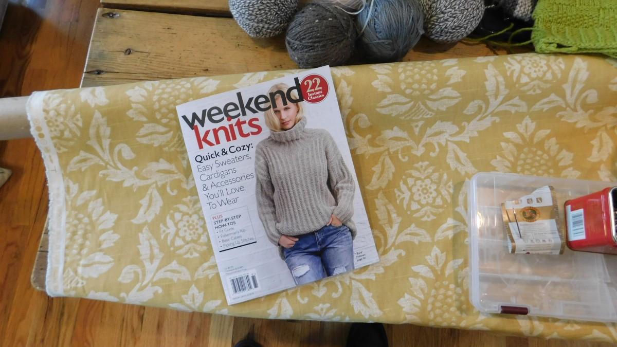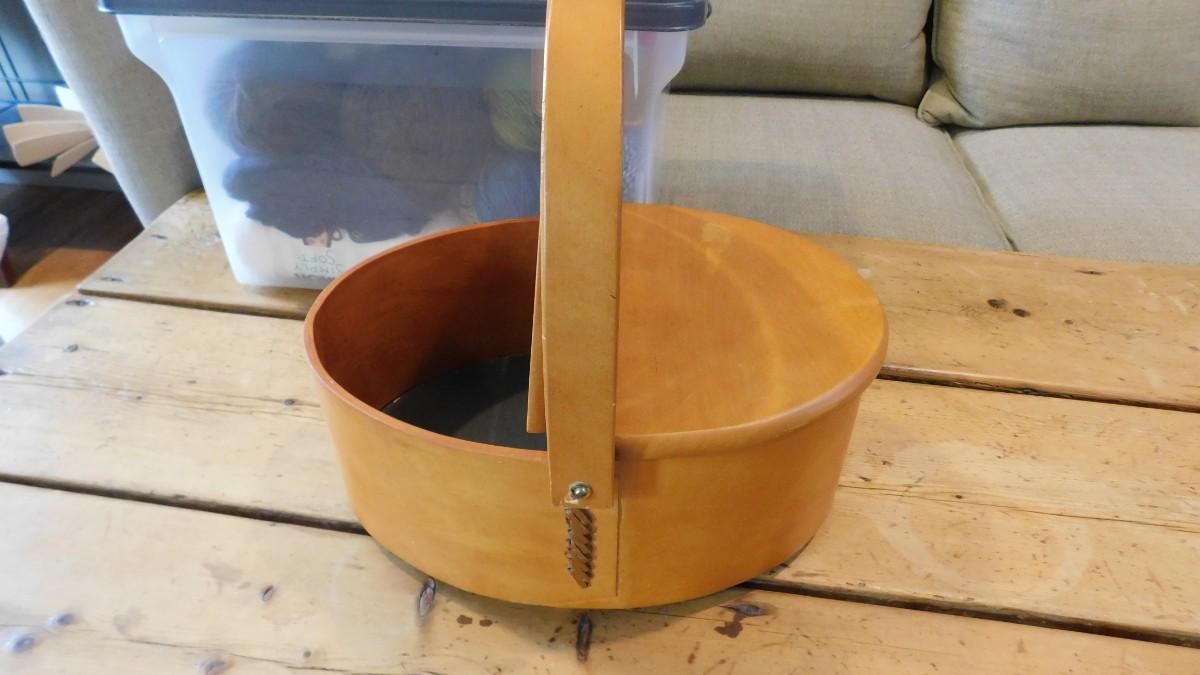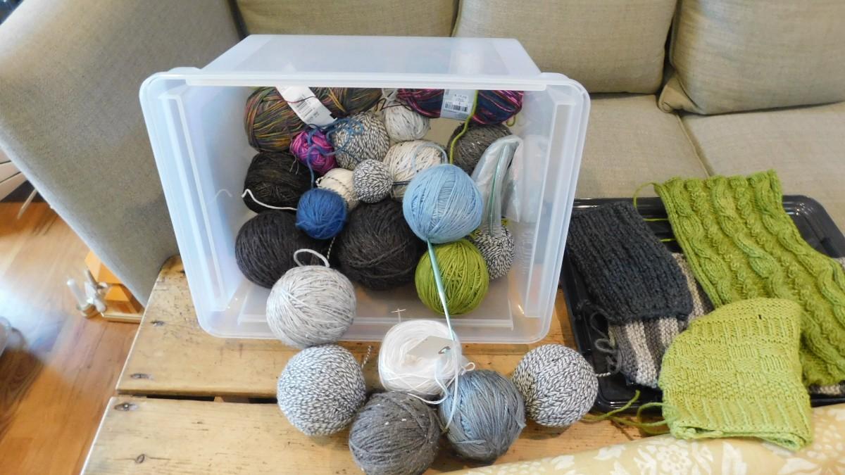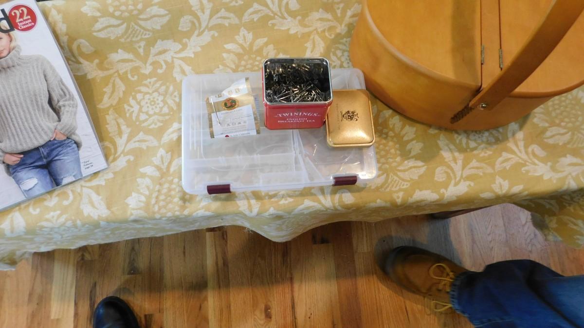 WOODEN SEWING BOX, YARN AND SEWING MATERIAL