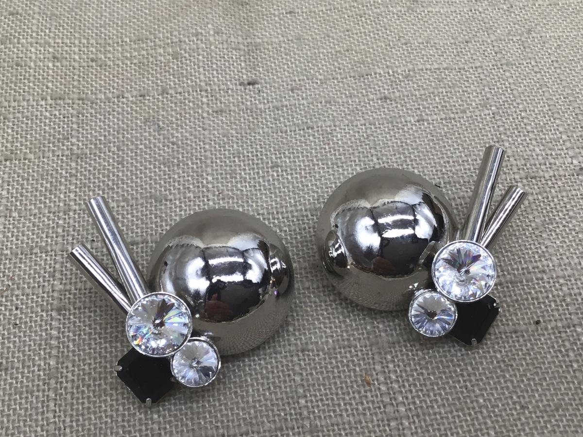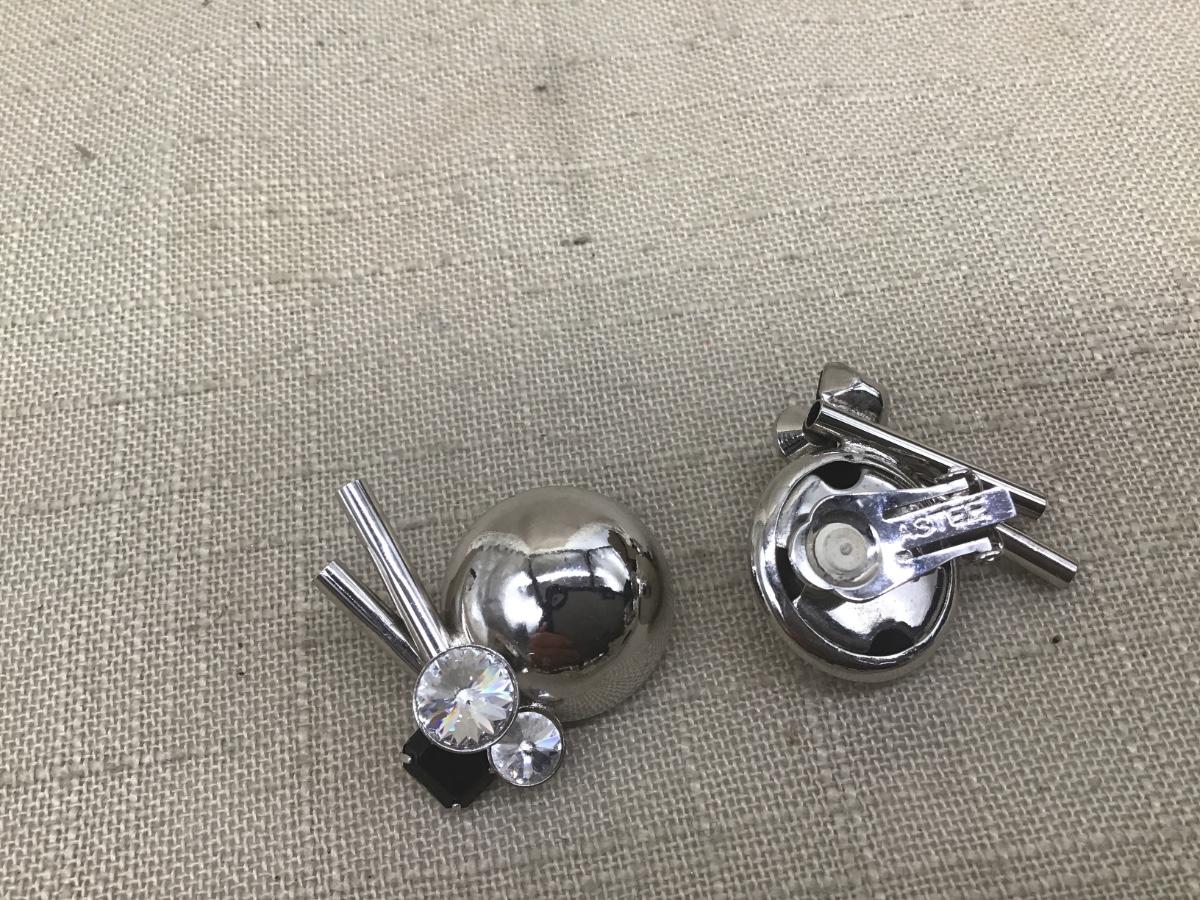 Vtg Signed Astee Modernist Earrings Clip-On Rivoli Bezel Silvertone Tone