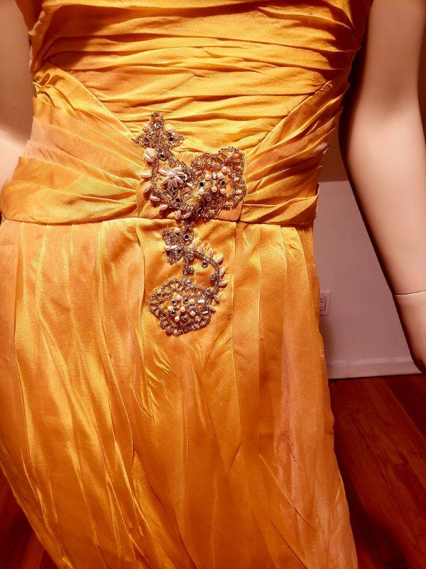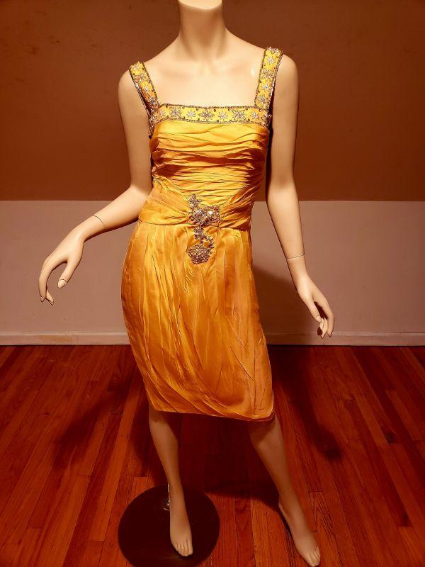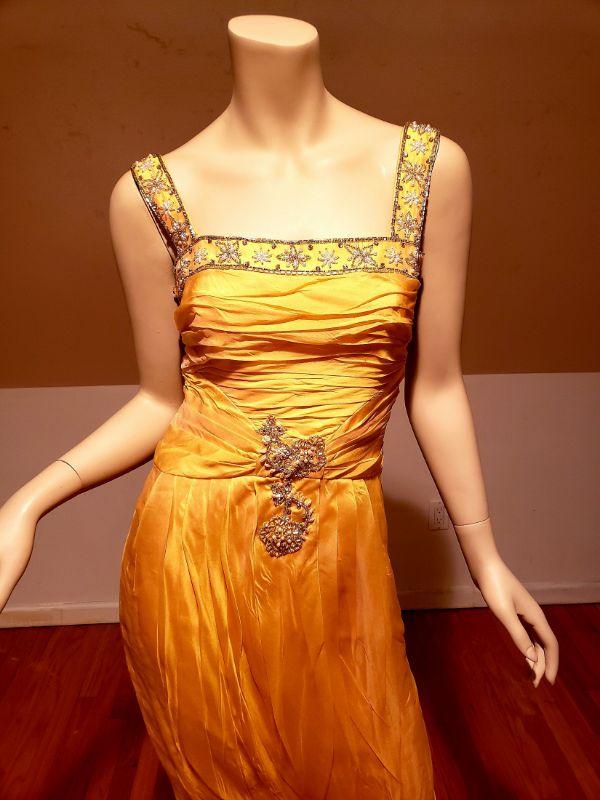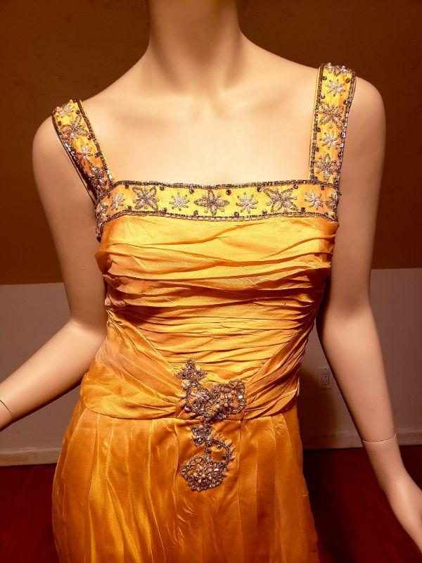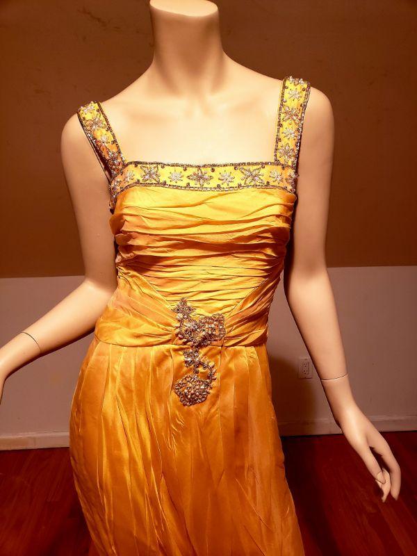 A beauty with amazing details and beaded glass and pearls rhinestones. Sash waistband . Lined