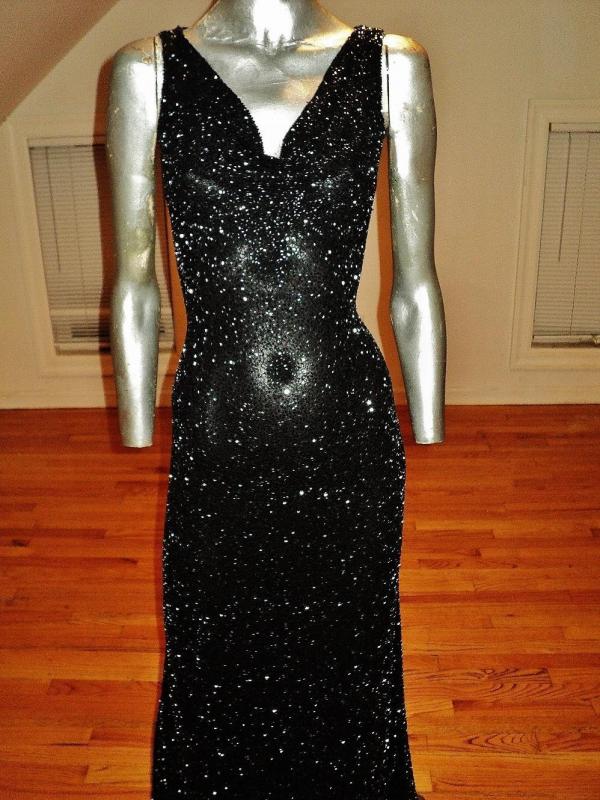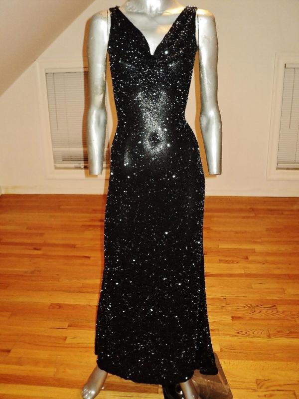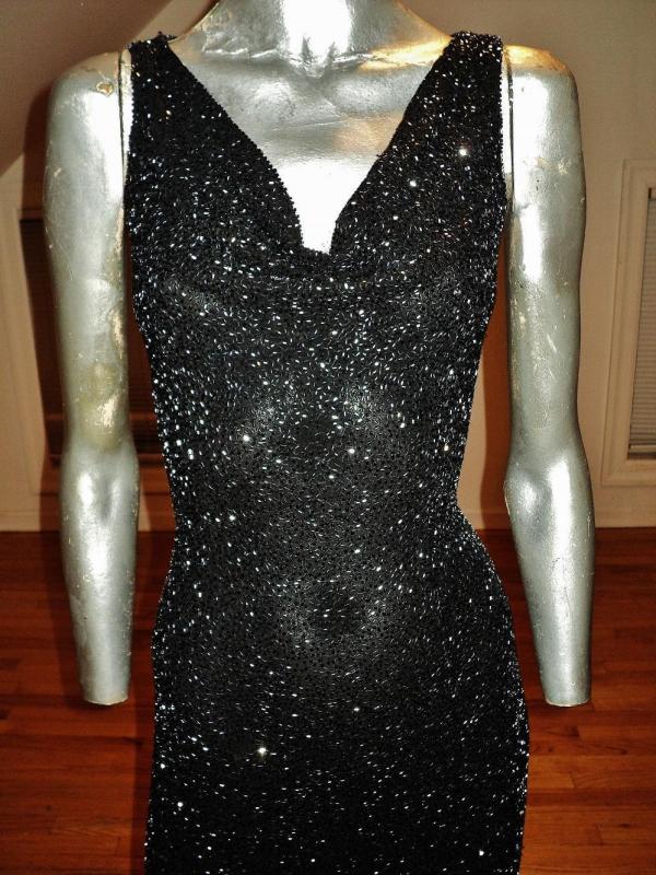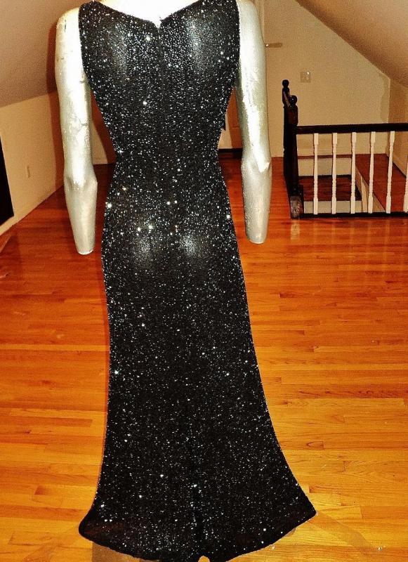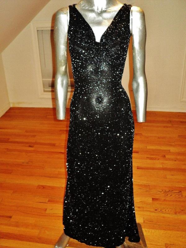 Vtg silk Onyx maxi gown with train extremely heavy beaded bias cut