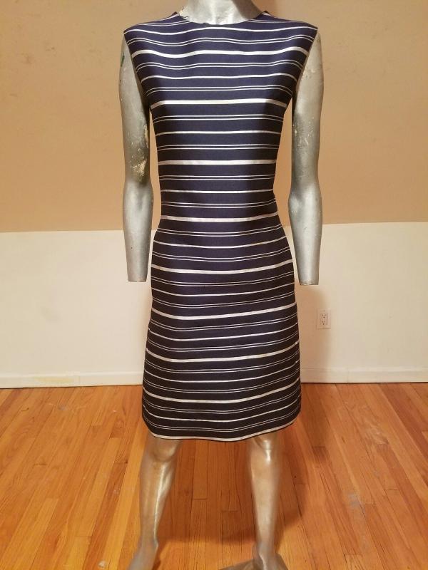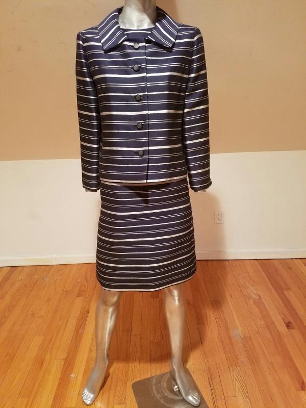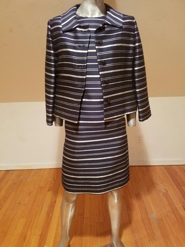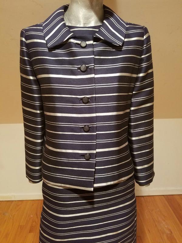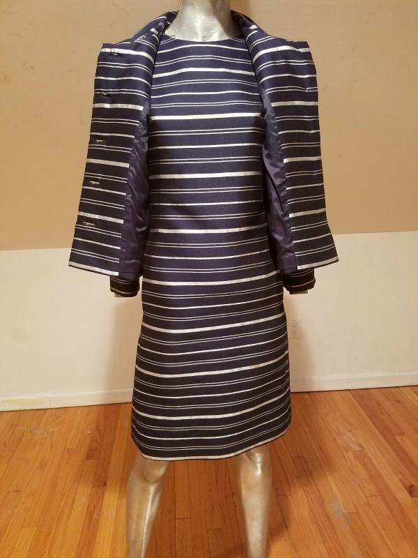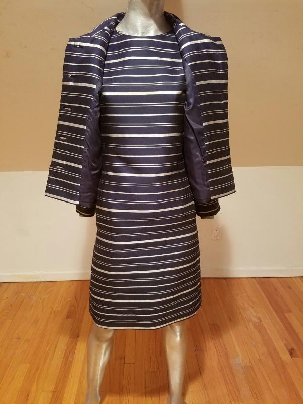 Stunning silk shantung striped silver lame' dress and Jacket ensemble