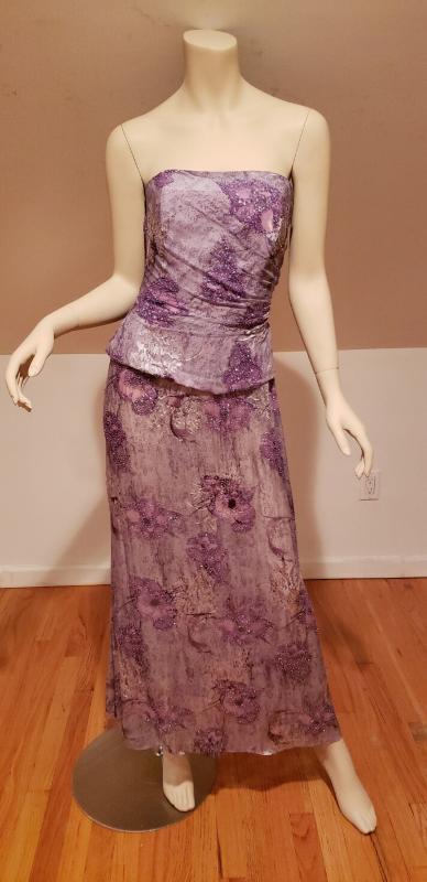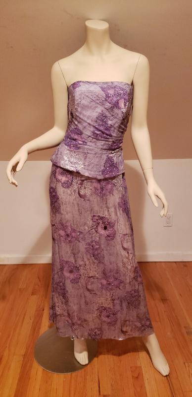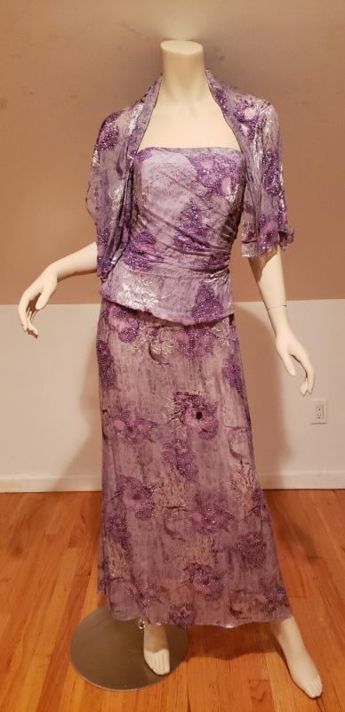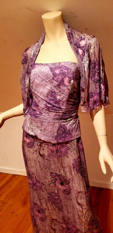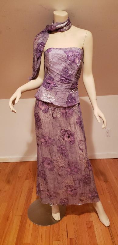 Vtg silk violet Jovani strapless beaded gown with cover scarf