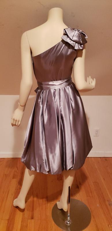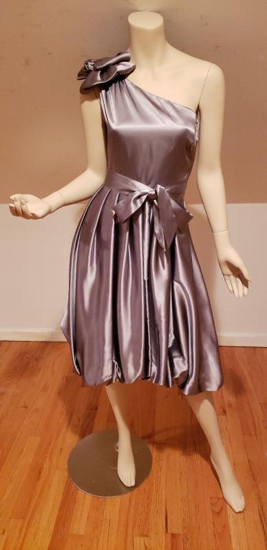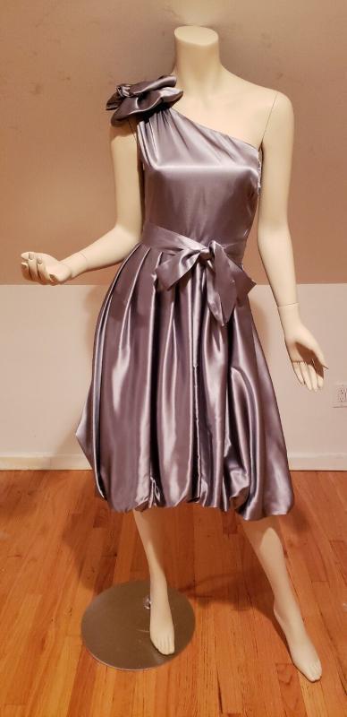 Vtg single shoulder gun metal silver bubble dress kitten bow