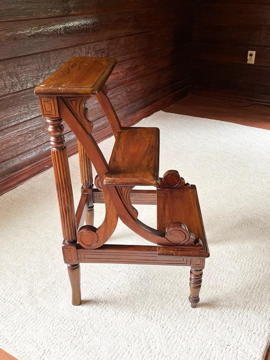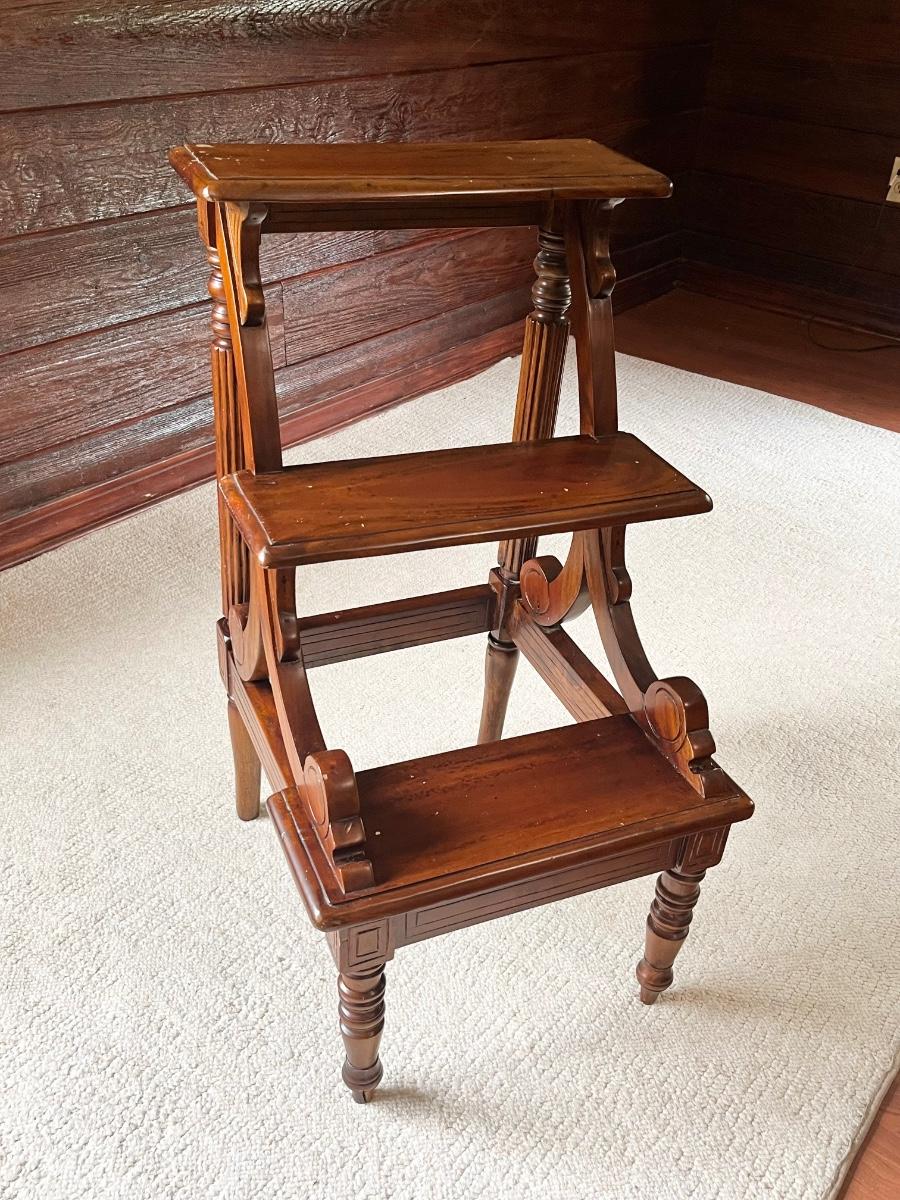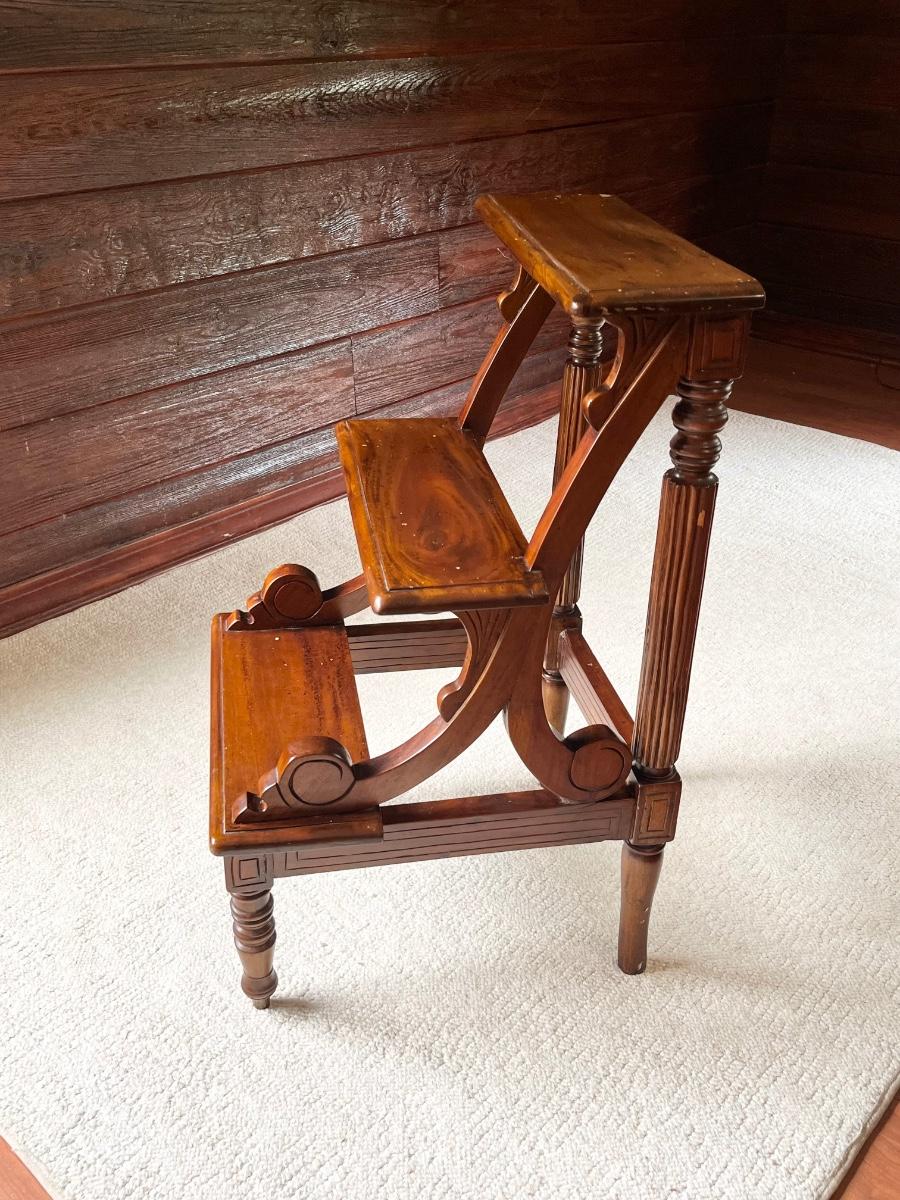 Vtg. Solid Carved Wood 3 Step Ladder ~ *Read Details