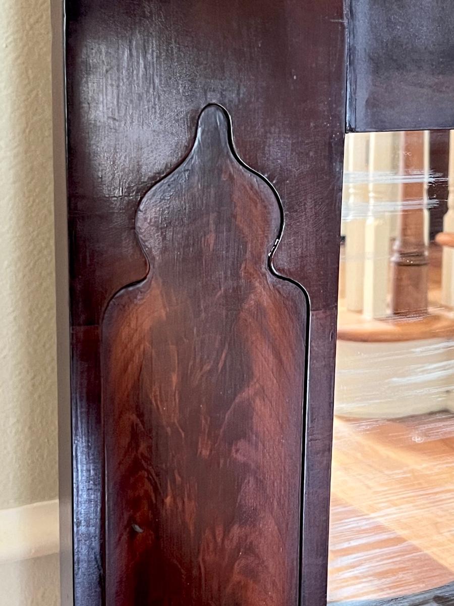37” H x 40” W x 18” D ~ On metal casters ~ Mirror has streaking & there is a chip on the corner & a small piece of molding is missing as seen in photo (barely noticeable) ~ No brand name