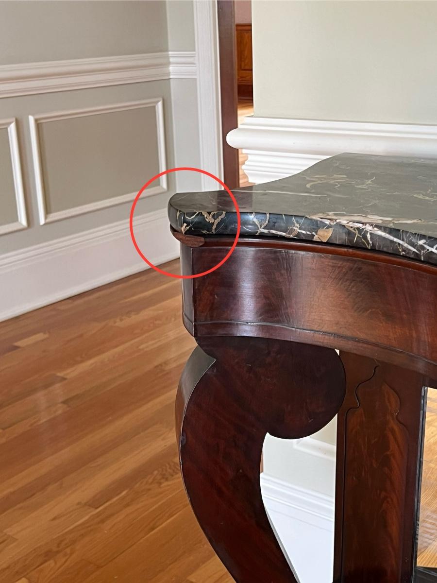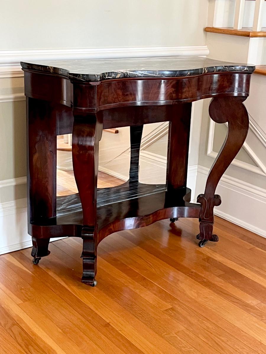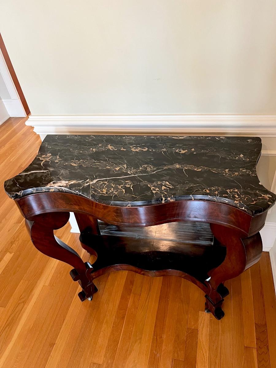 Vtg. Solid Mahogany Console Table ~ With Black Mable Top