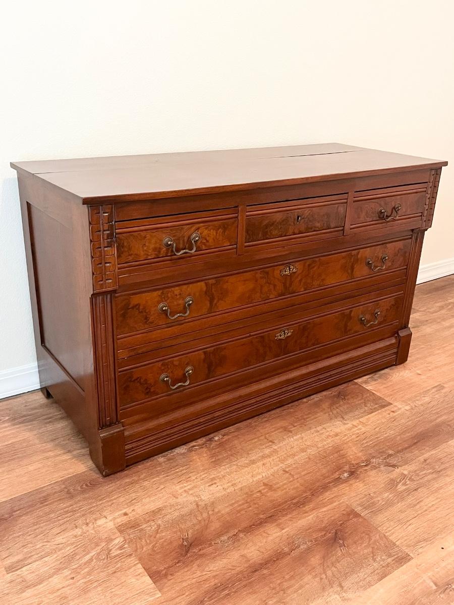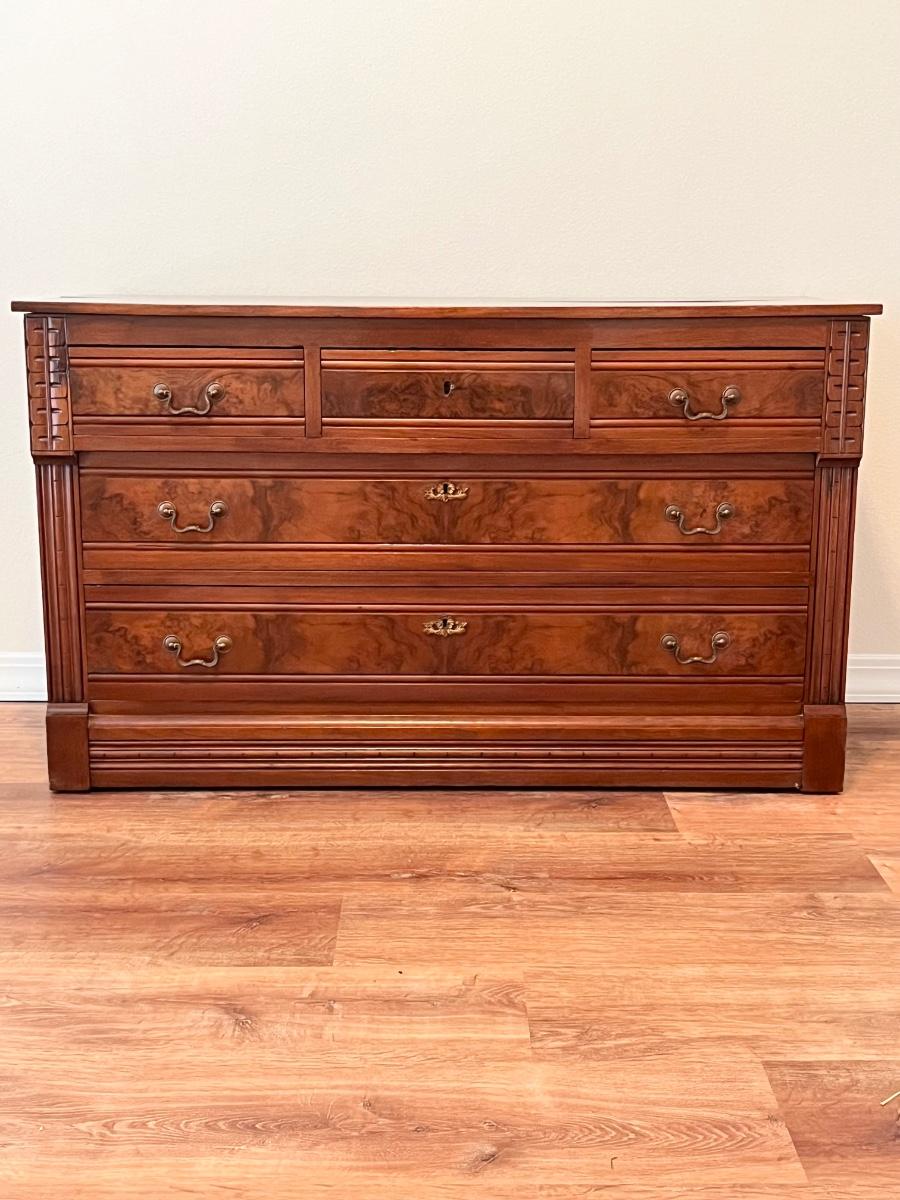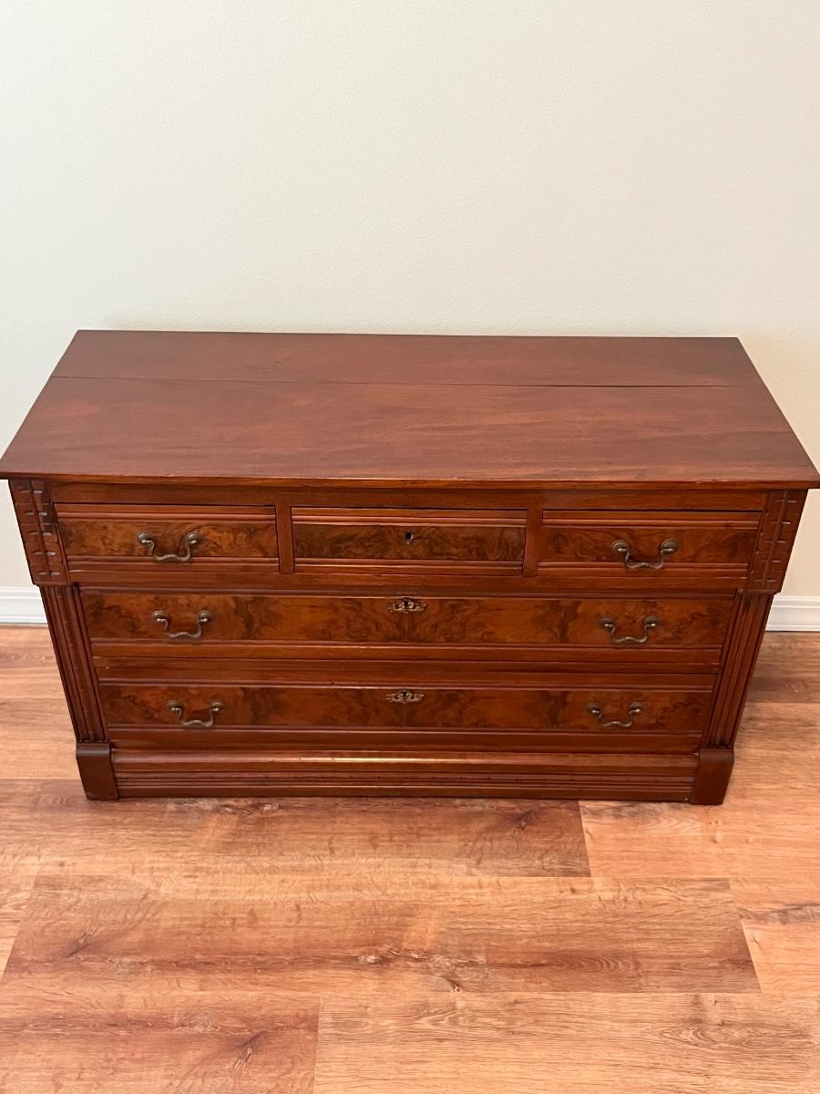 29” H x 48” W x 20” D ~ 5 Drawers slide easily ~ skeleton key is missing ~ No brand