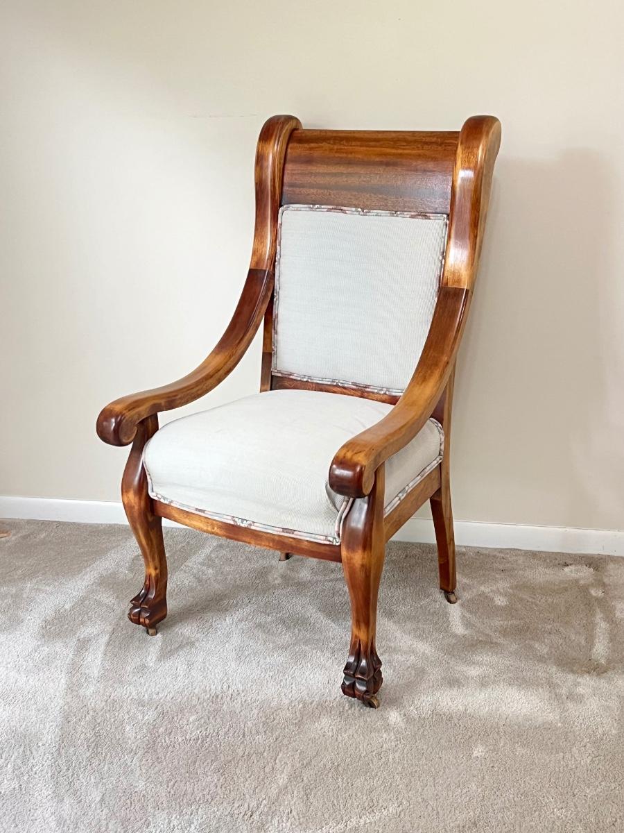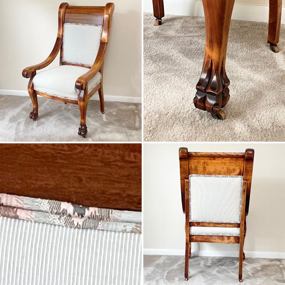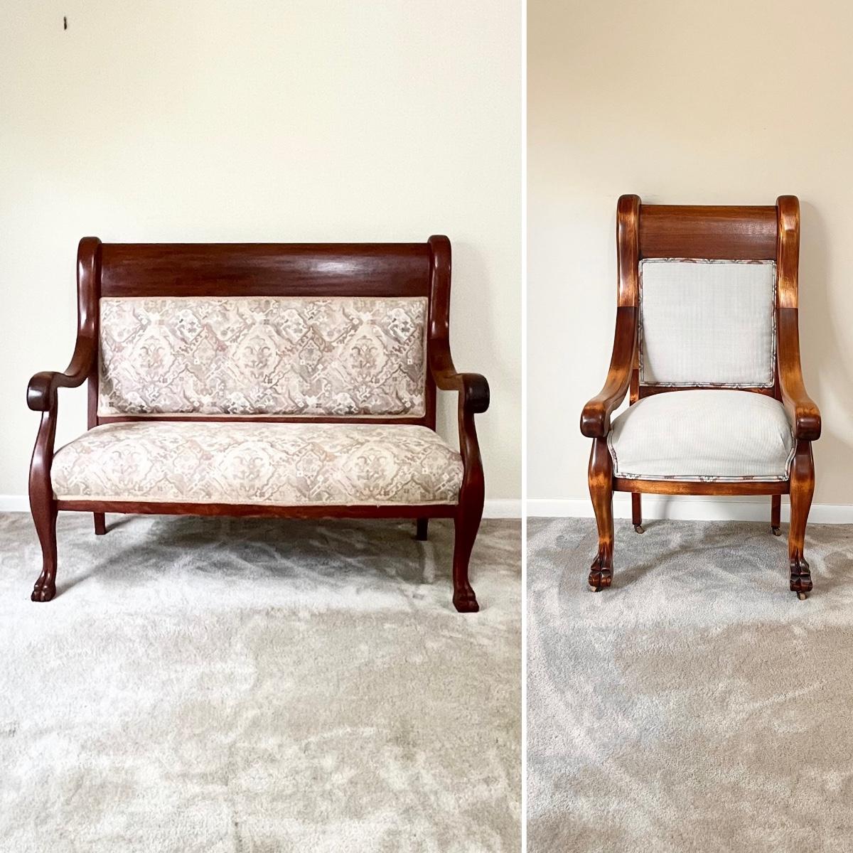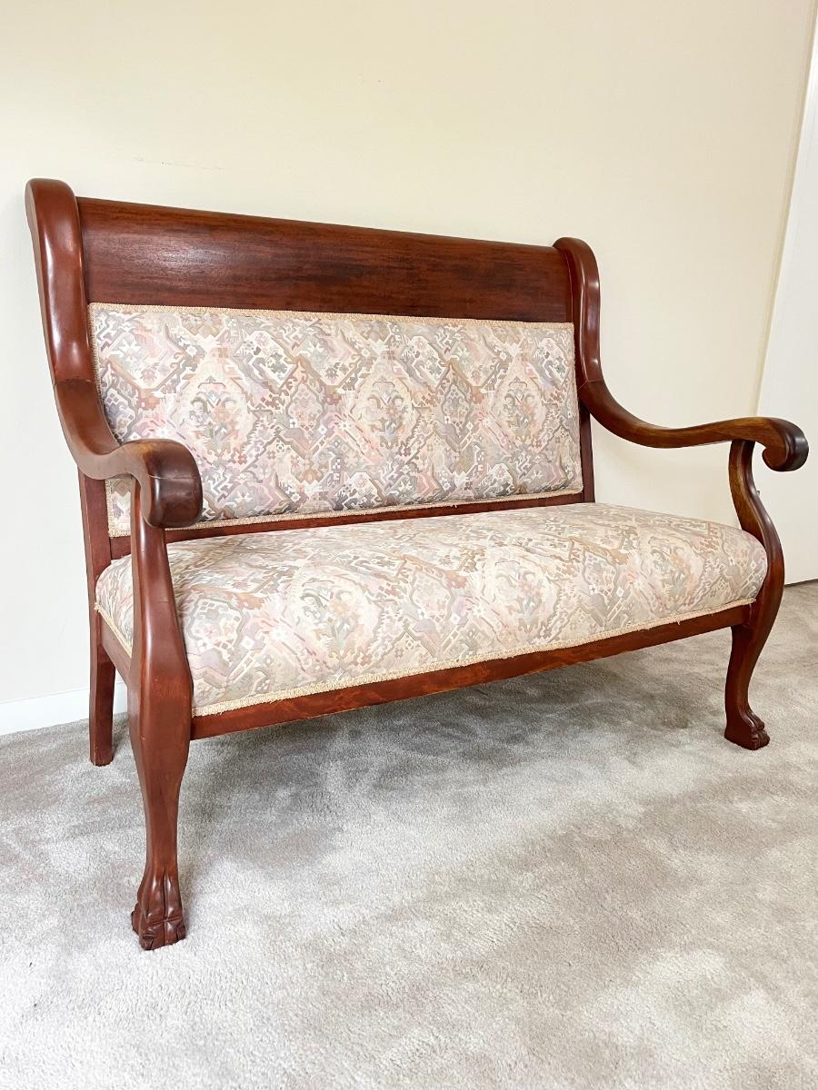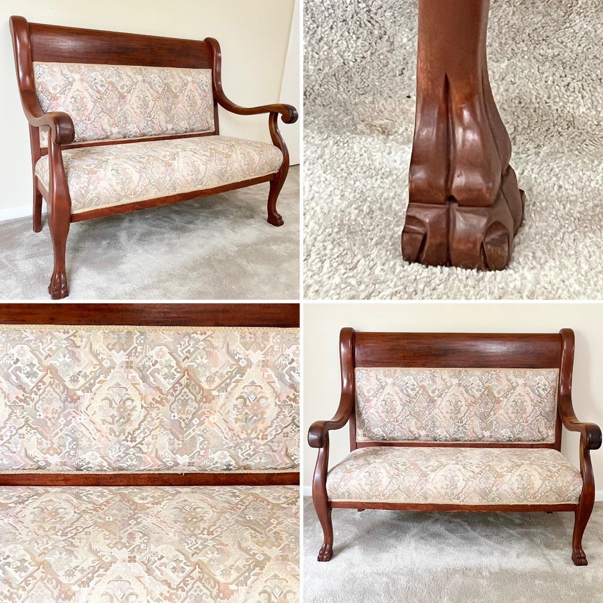 Vtg. Solid Mahogany Clawfoot Settee & Accent Chair