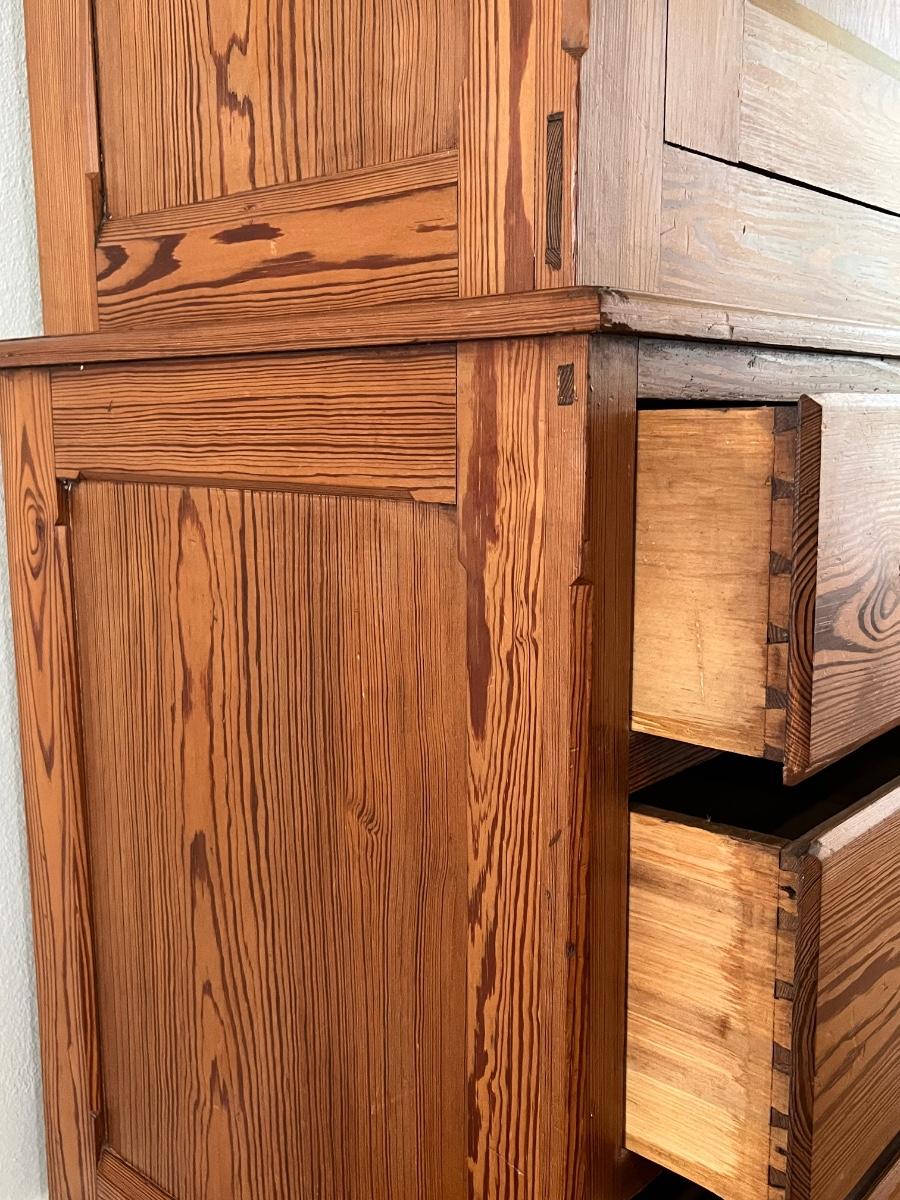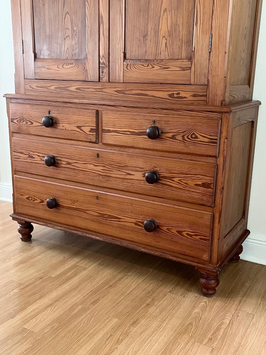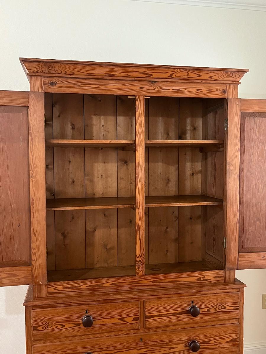 82” H x 49” W x 21” D ~ 2 piece Cabinet ~ Shelves are not adjustable ~ Drawers slide easily