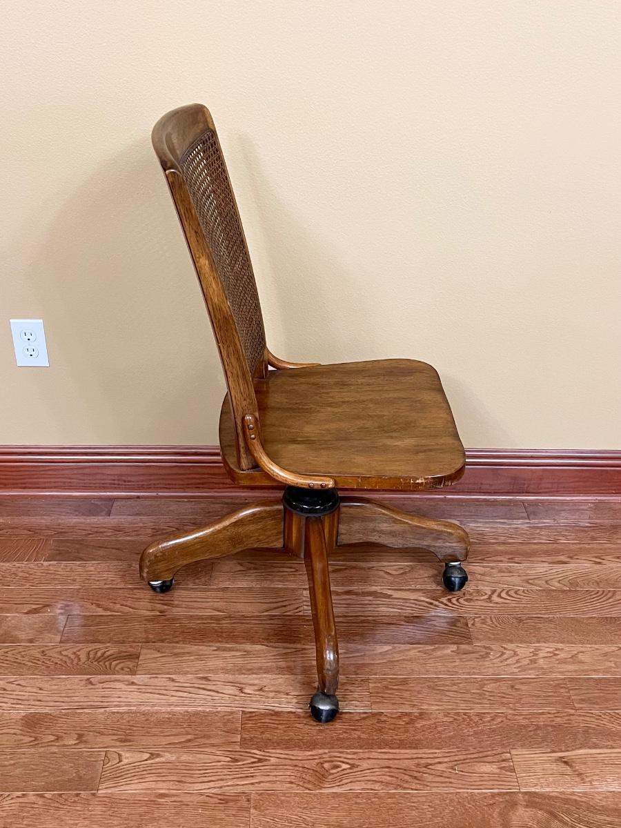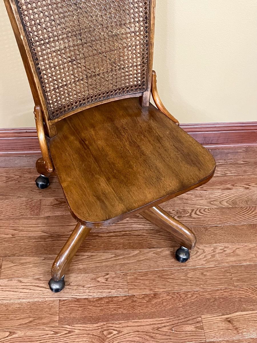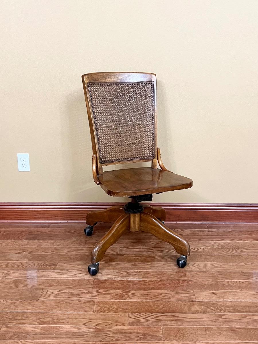 Vtg Solid Wood Cane Back Chair ~ Swivels