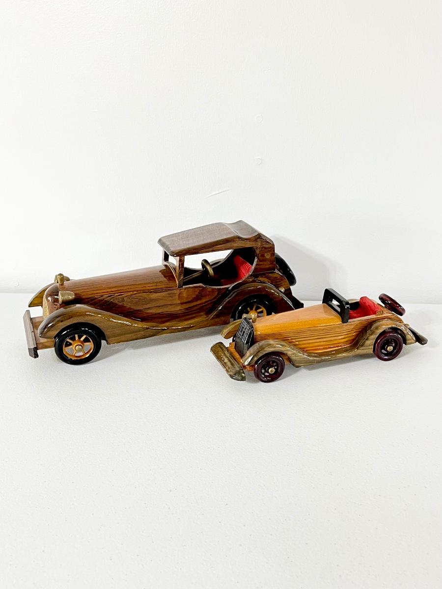 Bigger car = 5.5” H x 15” W x 5” D ~ Smaller car = 3.5” H x 10.5” H x 4” W ~ Smaller car has 1 headlight & steering wheel missing